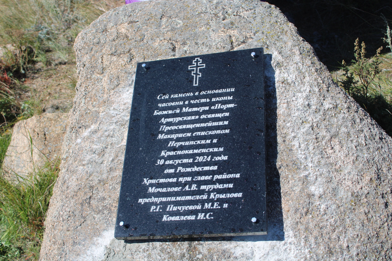 30 августа 2024 года епископ Нерчинский и Краснокаменский Макарий совершил чин освящения закладного камня в основании часовни в честь иконы Божией Матери Порт-Артурская на территории захоронения советских воинов в 16 километрах северо-восточнее пгт. Забайкальск. Его Преосвященству сослужил секретарь Нерчинской епархии игумен Симеон (Зимняков). За богослужением молился глава муниципального района «Забайкальский район» Мочалов Александр Владимирович. После освящения закладного камня владыка Макарий отметил, что возведение часовни в этом месте увековечит бессмертную память о подвиге, о самоотверженности и несокрушимом духе солдат, которые сражались за Родину. Напомним, что 20 августа епископ Макарий освятил место под строительство часовни-памятника. Строительство часовни – это дань памяти и уважения к героическому подвигу советских воинов, которые сражались за Родину на фронтах Великой Отечественной войны и советско-японской войны 1945 года. Место, выбранное для строительства часовни, имеет особое значение. Именно здесь, в период с 1942 по 1951 годы, функционировало 7 госпиталей и 2 эвакоприемника. В этих госпиталях проходили лечение раненые солдаты, получившие увечья в ходе кровопролитных боев на фронтах войны. Именно на этой земле, близлежащей к госпиталям, покоятся сотни солдат, умерших от ран. ©Нерчинская епархия
