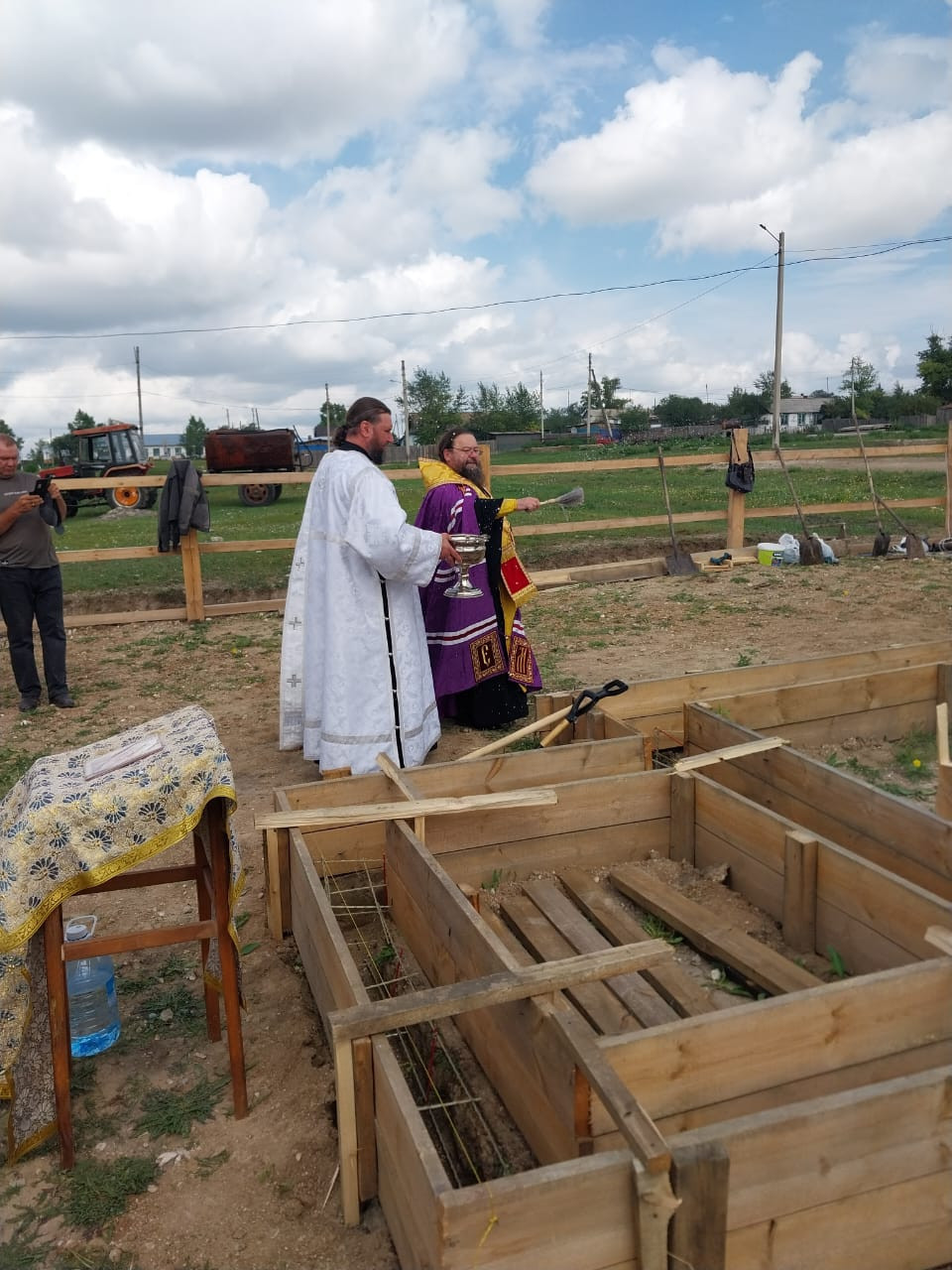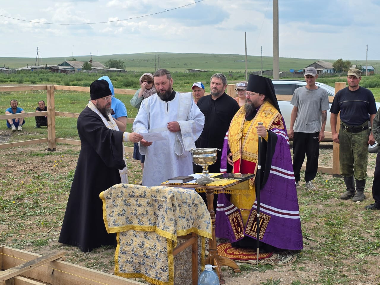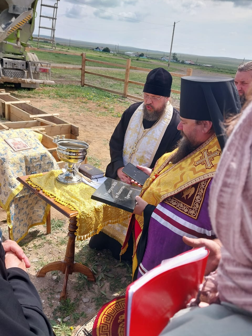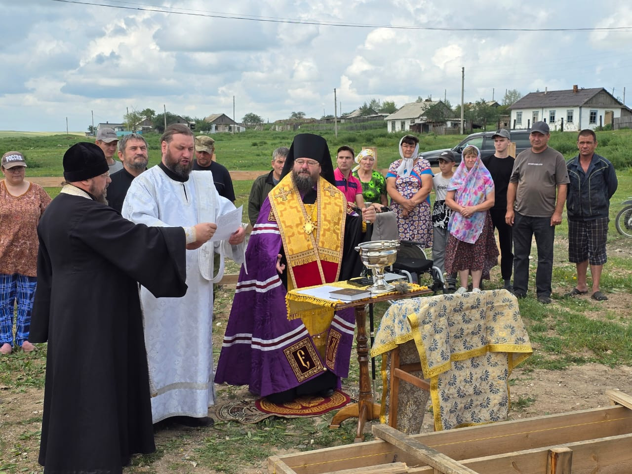 Епископ Макарий совершил чин освящения закладного камня в основание строящейся часовни в честь святителя Спиридона Тримифунтского