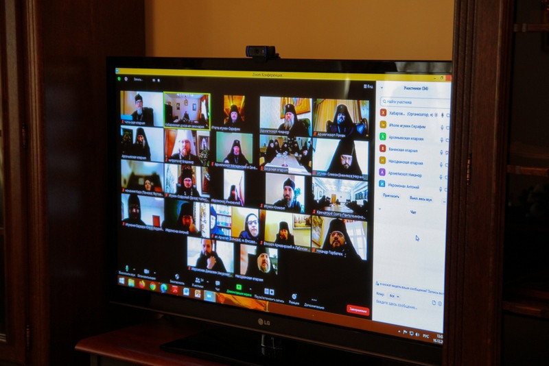 16 декабря 2021 года по благословению Святейшего Патриарха Московского и всея Руси Кирилла под председательством митрополита Хабаровского и Приамурского Артемия прошло онлайн-заседание круглого стола на тему «Монашеские добродетели как средоточие монашеского подвига» с участием архиереев, игуменов и игумений монастырей, монашествующих пятнадцати епархий, расположенных на территории Дальневосточного федерального округа. Со вступительным словом к участникам обратился митрополит Хабаровский и Приамурский Артемий. Глава Приамурской митрополии поприветствовал участников круглого стола, среди которых были: митрополит Владивостокский и Приморский Владимир, митрополит Читинский и Петровск-Забайкальский Димитрий, архиепископ Магаданский и Синегорский Иоанн, архиепископ Петропавловский и Камчатский Феодор, архиепископ Южно-Сахалинский и Курильский Никанор, архиепископ Якутский и Ленский Роман, епископ Амурский и Чегдомынский Николай, епископ Арсеньевский и Дальнегорский Гурий, епископ Находкинский и Преображенский Николай. Митрополит Артемий выразил благодарность Святейшему Патриарху Московскому и всея Руси Кириллу за благословение провести круглый стол, отметив, что проведение этой братской встречи, которая дает возможность обсудить сегодняшнюю жизнь наших монастырей, очень востребована сегодня. — У многих из собравшихся за прошедшие годы накоплен немалый монашеский опыт, с которым мы бы хотели, чтобы они поделились с нами, используя такую форму братской беседы, как круглый стол, — подчеркнул владыка Артемий. — Думаю, что для многих из нас колыбелью монашеской жизни является Троице-Сергиева лавра, а отцом и игуменом — преподобный Сергий, явивший высочайший образец монашеского служения. Он поистине стал всероссийским игуменом. Многие, и я в том числе, начинали свой пут от мощей преподобного Сергия, пользуясь наставлениями и опытом духовников Троице-Сергиевой лавры. Также владыка митрополит отметил, что главным источником духовной силы преподобного Сергия был молитвенный подвиг, который, в том числе, приводил к умножению братии. После приветственного слова митрополита Артемия свои доклады представили представители Дальневосточных епархий. Участники круглого стола также обсудили важные аспекты монашеской жизни, поделились опытом прохождения монашеского пути, устроения внутренней и внешней жизни современных монастырей и поделились их проблемами при взаимодействии с современным миром. Все присутствующие отметили духовную пользу от услышанных докладов, от обсуждения проблем, говорили о большой практической значимости мероприятия и своевременности его проведения. Каждый внес свои предложения, на основе которых сформирована итоговая резолюция, которая будет передана в Синодальный отдел по монастырям и монашеству. По благословению митрополита Читинского и Петровск-Забайкальского Димитрия в мероприятии от Нерчинской епархии участвовал секретарь епархии игумен Симеон (Зимняков). По материалам официального сайта Приамурской митрополии