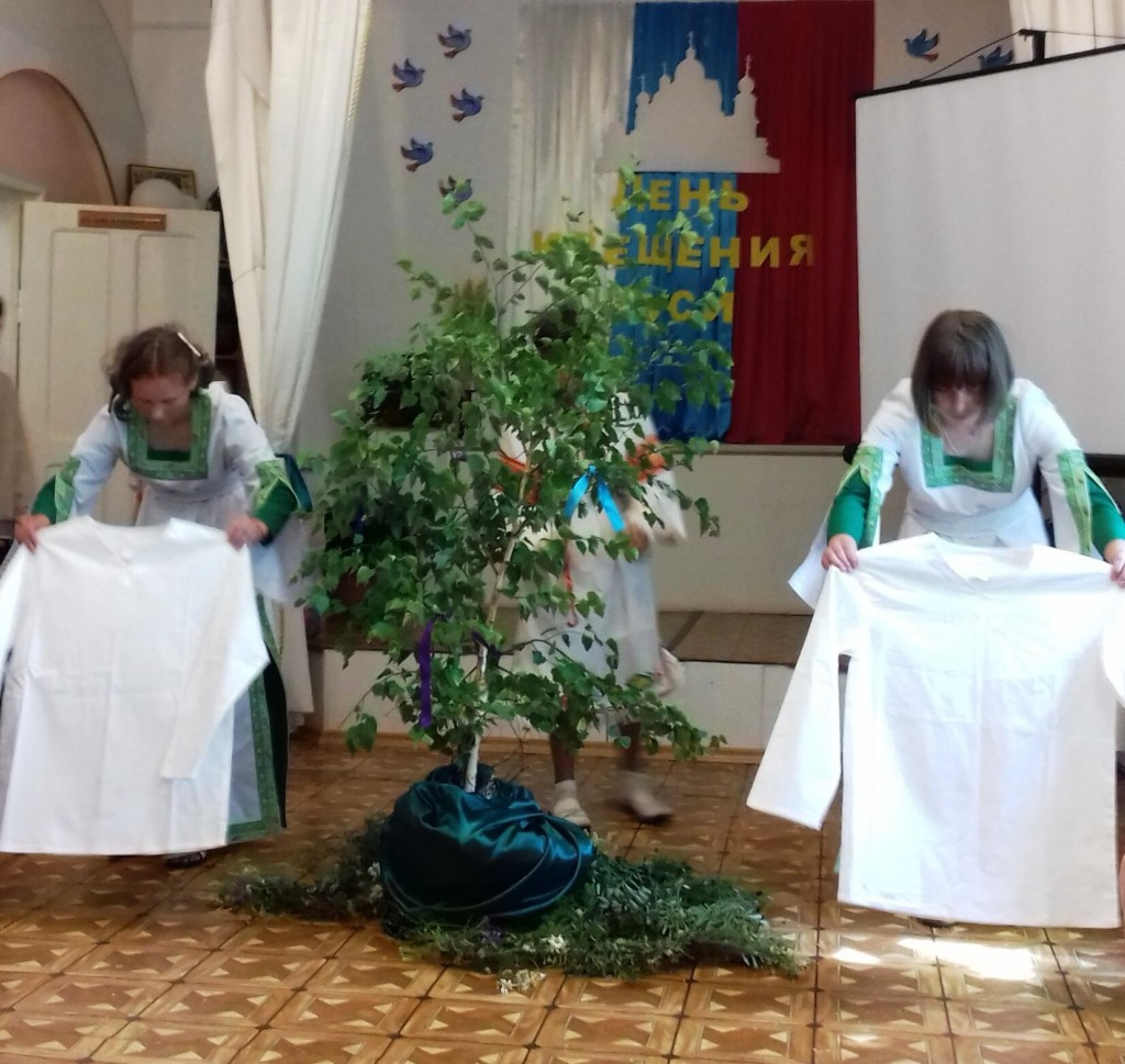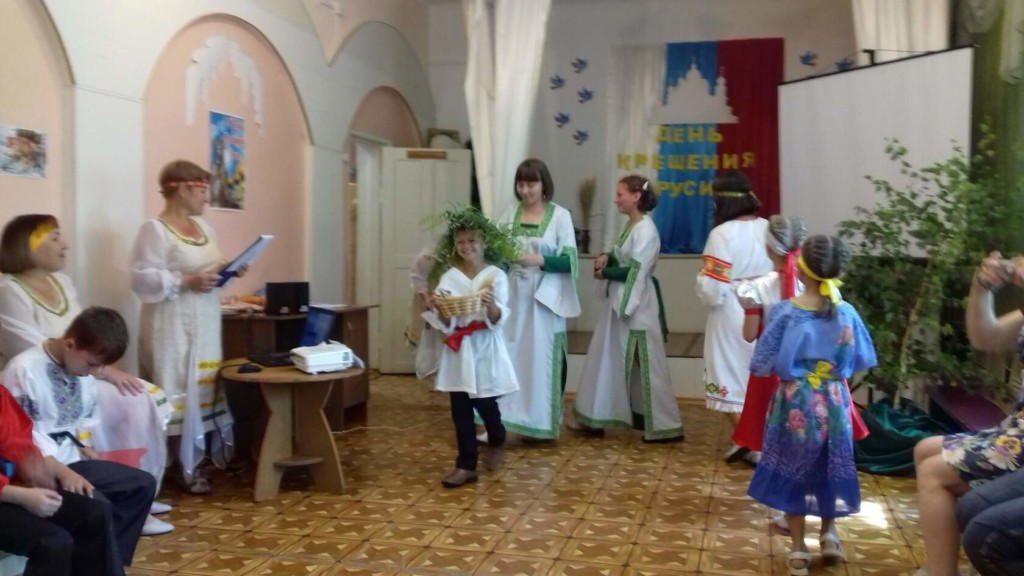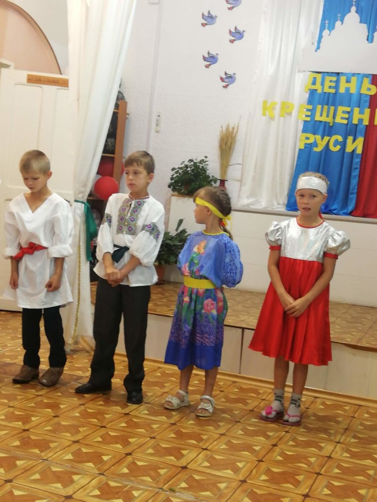 В Государственном учреждении социального обслуживания «Комплексный центр социального обслуживания населения «Ясногорский» в июле 2020 года прошли мероприятия, знакомившие детей с историей древней Руси, первыми христианами, житием княгини Ольги и ее внука равноапостольного князя Владимира, который и привел славян к единой вере. Проводились познавательные беседы, организован просмотр роликов из «Истории Государства Российского» и мультфильма «Князь Владимир». Оформлены выставка рисунков «Крещение Руси» и тематические стенды «Богатыри земли русской», «Русские князья». Дети и взрослые учили стихи и песни, готовили костюмы на праздник. Дети показали сценку «Три богатыря», исполнили свои роли ярко, проникновенно. Завершились путешествия по истории России праздником «Князь Владимир Красно Солнышко и Крещение Руси» 28 июля в день православного праздника. Источник: группа Свято-Димитриевского Прихода п.Ясногорск в Одноклассниках. ©Нерчинская епархия
