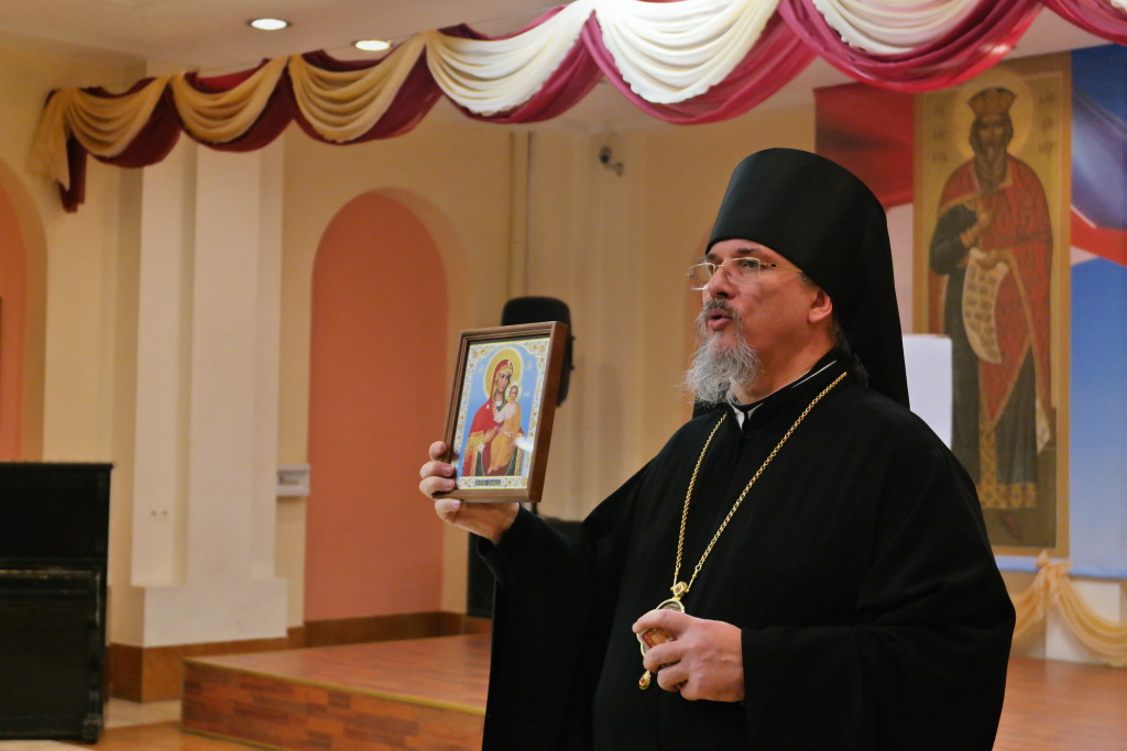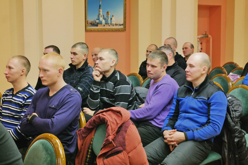 О чести, совести, верности Отечеству, о ценности любви и уважения в семье шла речь на традиционной предновогодней встрече Преосвященного епископа Димитрия с бойцами ОМОН Забайкальского линейного управления МВД на транспорте. По благословению Главы Забайкальской митрополии, Высокопреосвященного митрополита Владимира беседа прошла в Казанском кафедральном соборе г. Читы. Участники встречи прошли большие жизненные испытания, у отряда было более десятка служебных командировок на Северный Кавказ. За отвагу и мужество многие награждены орденами и медалями. Бойцы хорошо знаю ценность каждого мгновения жизни, важность поддержки родных и близких в сложных ситуациях. Владыка рассказал о том, что необходимо беречь душу, а для этого нужно соблюдать главную заповедь Христа: «Да любите друг друга, как Я возлюбил вас». Именно эти слова как никогда актуальны во время всеобщего тщеславия и корысти, во время, когда чрезвычайно велик риск проникновения радикальных исламских группировок на территорию России. «Призываю вас быть внимательными к тем, кто обращается за помощью. Никому не отказывать, но помнить, что опасность близко. Призываю Божие благословение на Ваши труды и желаю всегда возвращаться домой живыми и здоровыми,» — отметил епископ Димитрий. Всем бойцам Владыка подарил иконы благоверного князя Александра Невского, а отряду — Смоленский образ Пресвятой Богородицы. По окончании встречи Владыка совершил Таинство Крещения одного из бойцов отряда. Боец крещен с именем Владимир в честь святого равноапостольного князя Владимира. Пресс-служба Нерчинской епархии. встреча с бойцами ОМОН