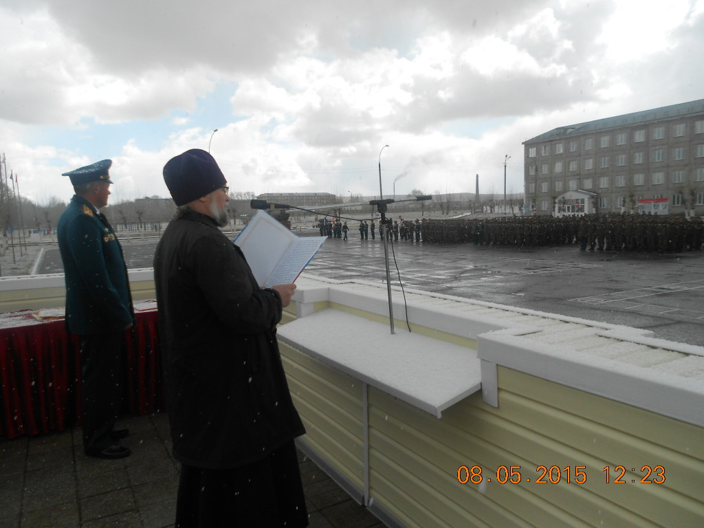 В преддверия Дня Победы настоятель Прихода храма прп. Сергия Радонежского г. Борзя иерей Николай Заболотников посетил 36-ю мотострелковую воинскую бригаду. Ровно в 10 часов утра во время построения бригады звучали поздравления. Иерей Николай напутственным словом поздравил командный и рядовой состав, ветеранов и всех присутствующих с 70- летием годовщины Победы в Великой Отечественной Войне. Пожелал всем ветеранам и военнослужащим душевного и телесного здравия, бодрости духа и мужества на многая и благая лета. По окончанию митинга состоялся праздничный концерт.