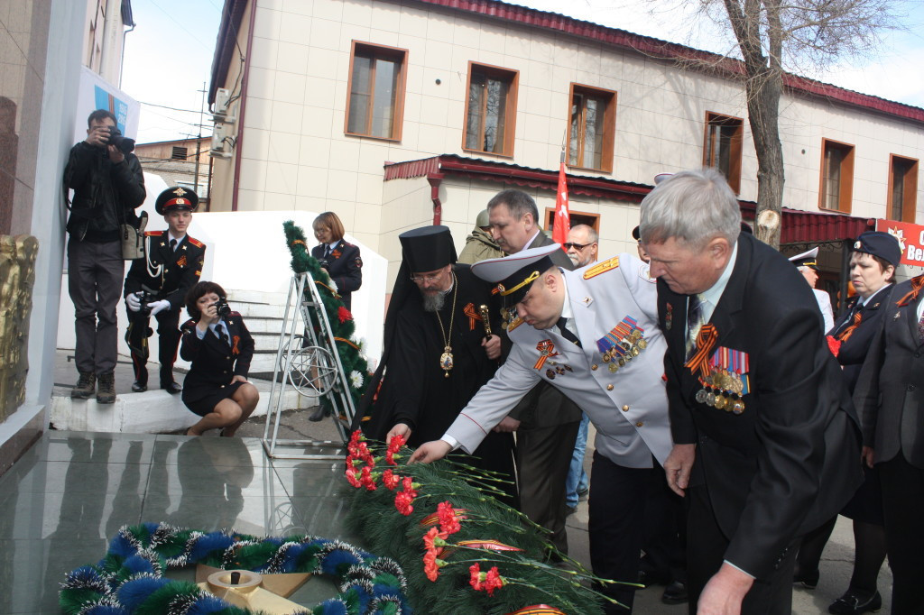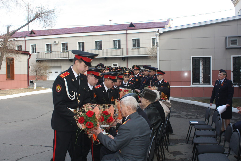 В преддверии празднования 70-й годовщины Великой Победы, в Забайкальском линейном управлении МВД России на транспорте состоялись торжественные мероприятия, посвященные чествованию ветеранов органов внутренних дел – участников Великой Отечественной войны и тружеников тыла. Торжественный митинг с участием руководства и личного состава Управления, членов Общественного совета, курсантов Читинского Суворовского военного училища МВД России состоялся у памятной мемориальной стелы, на которой начертаны имена сотрудников органов внутренних дел на транспорте, погибших в годы Великой Отечественной войны. Главными участниками торжества стали ветераны, участники Великой Отечественной войны и труженики тыла, а также члены семей сотрудников, погибших при исполнении служебных обязанностей. Сердечную благодарность фронтовикам выразил начальник Забайкальского линейного управления МВД России на транспорте полковник полиции Евгений Стасишин: «Сегодня все меньше остается с нами ветеранов и тружеников тыла. Уходят люди, но их Великий подвиг остается в веках. Поэтому так важно личное общение молодого поколения и ветеранов. Героическое прошлое нашего народа – это большой потенциал настоящего и будущего». Почетные гости праздника также поздравили ветеранов. «Великая Отечественная война — это самый важный урок понимания ценности патриотизма. Поколение ветеранов, прошедшее через тяжкие испытания и потери, доказало, что любовь к Родине – самое сильное и глубокое чувство. И забыть об их подвиге нельзя, слишком дорогой ценой досталась эта победа», – отметил в своем поздравлении член Общественного совета, Епископ Нерчинский и Краснокаменский Димитрий. В память о тех, кто не вернулся с полей сражений Великой Отечественной войны, кто погиб, исполняя свой служебный долг в мирное время, состоялась церемония возложения цветов к мемориалу и вечному огню. При содействии пресс-службы Управления внутренних дел на транспорте по Забайкальскому краю.
