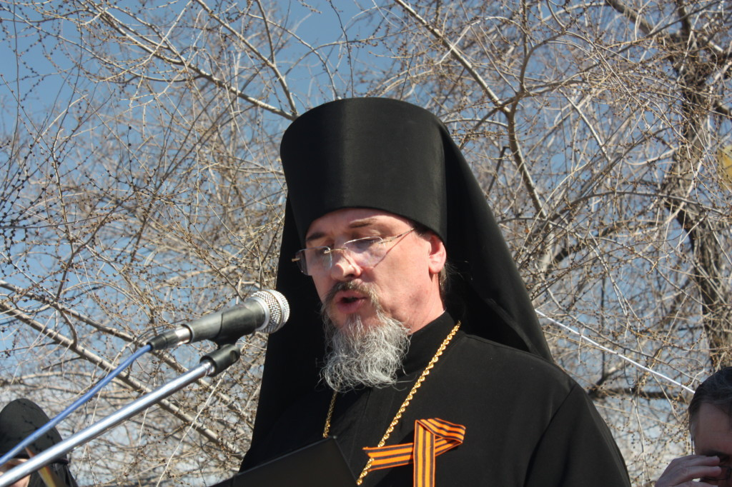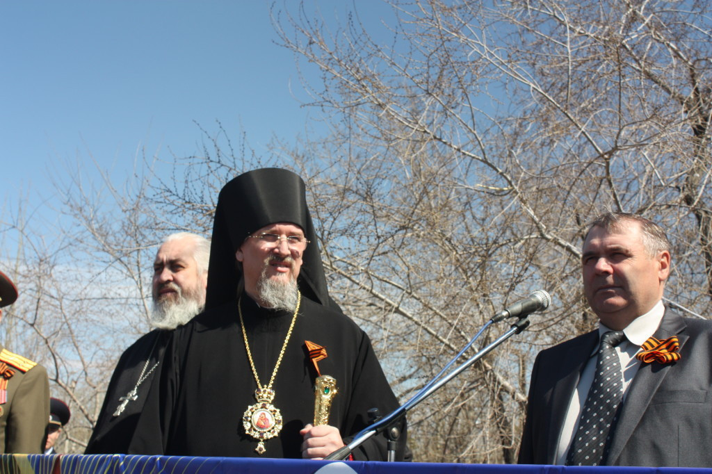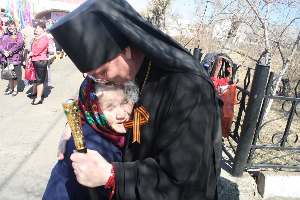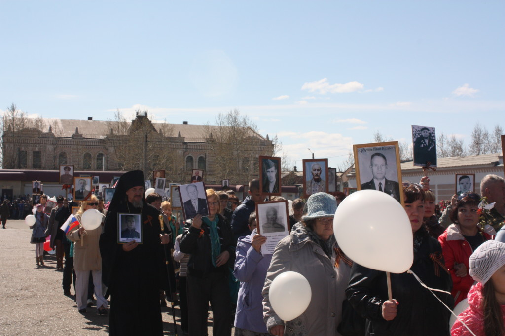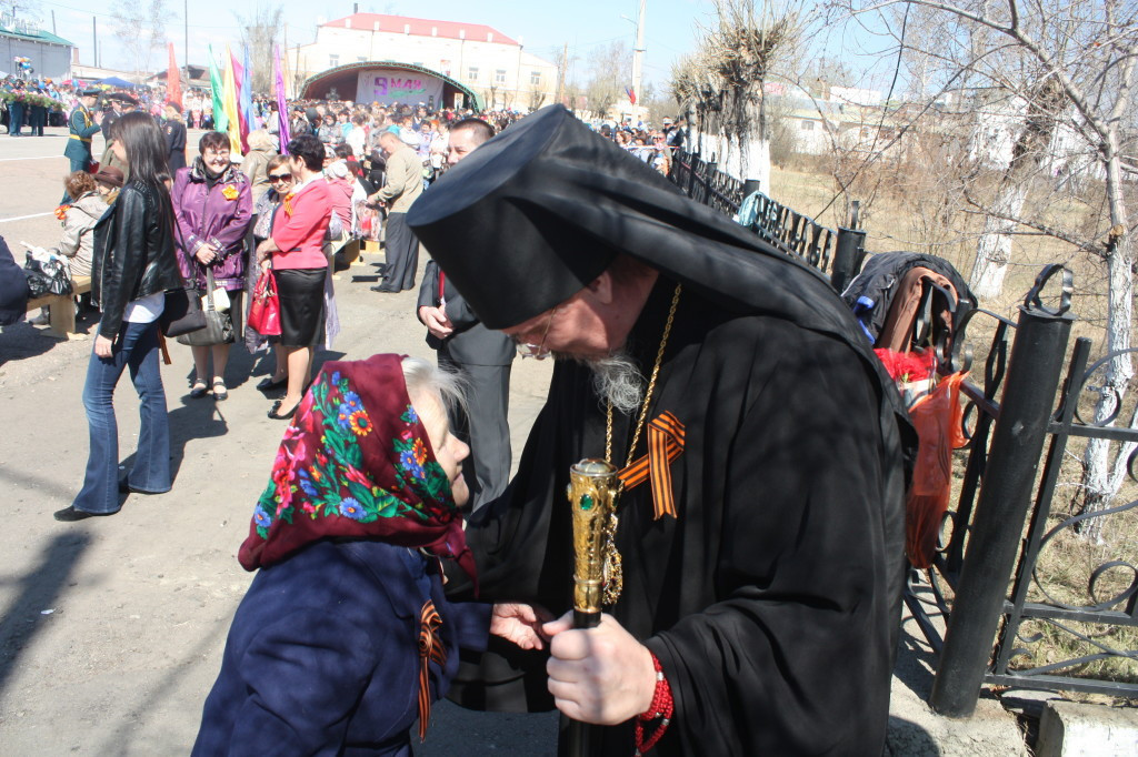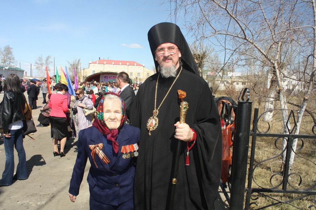 Несколько тысяч человек собрались на Центральной площади г. Нерчинска в День Победы. Самыми главными героями в этот день стали ветераны Великой Отечественной войны, труженики тыла, дети войны. Поздравить их на главную трибуну вышли первые лица города и района.Праздничный митинг открыл исполняющий обязанности главы Нерчинского района Игорь Шестаков. Со словами поздравления обратился епископ Нерчинский и Краснокаменский Димитрий: «Сегодня я обращаюсь к нашим ветеранам со словами благодарности за труд, за их подвиг и за их мужество! Забайкалье с первого дня войны мобилизовало все силы для защиты нашей Великой Родины. В октябре-декабре 1941 года именно вклад сибирских дивизий, в которых воевали наши земляки-забайкальцы, определил исход исторической битвы за Москву. Эта битва не только положила конец планам наших недругов молниеносно, за несколько месяцев поработить наш народ, но и дала возможность поверить в том, что, считавшаяся доселе непобедимой немецкая армия, может быть побеждена. Воины-ветераны и труженики тыла, трудившиеся на наше благодатной Забайкальской земле, внесли весомую лепту в общую победу, а после войны — в возрождение полнокровной мирной жизни, строительство разрушенных сёл и городов. Господь за веру нашего народа, за его готовность пожертвовать буквально всем, вплоть до собственной жизни, даровал ему Великую Победу. Будем же помнить и свято хранить в сердцах наших память о славном подвиге народа нашего, прилагая все силы для сохранения Богом заповеданного спасительного мира, завоёванного подвигом веры и самопожертвования миллионов наших соотечественников!» — подчеркнул правящий архиерей. Кульминацией стало шествие Бессмертного полка. Несколько сотен человек, в том числе, Управляющий Нерчинской и Краснокаменской епархией, прошли с портретами своих родственников-фронтовиков. Дед-фронтовик епископа Димитрия, подполковник Григорий Ефимович Дзюба награждён Орденом Красной Звезды.»Полк, возглавляемый т. Дзюба, показал образцы мужества и стойкости в борьбе с немецкими захватчиками по очищению Северного Кавказа от фашистских полчищ. Полк, руководимый т. Дзюба, с боями прошёл путь от Орджоникидзе до низовьев Кубани и освободил сотни крупных и мелких населенных пунктов» Далее торжественным маршем прошли участники парада, военизированная техника, юные барабанщицы, танцевальные коллективы.