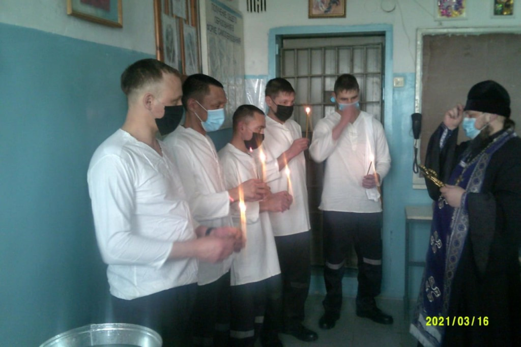 16 марта 2021 года игумен Симеон (Зимняков) совершил Таинство Крещения в Краснокаменском следственном изоляторе № 2 Управления Федеральной службы исполнения наказаний по Забайкальскому краю. В этот день Крещение приняли пять человек. Накануне батюшка провел огласительные беседы с желающими креститься. ©Нерчинская епархия