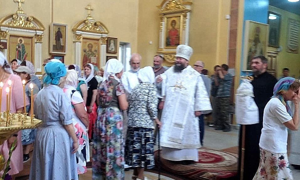 Накануне Недели 8-й по Пятидесятнице архипастырь совершил всенощное бдение в соборном храме Спаса Нерукотворного Образа в Краснокаменске