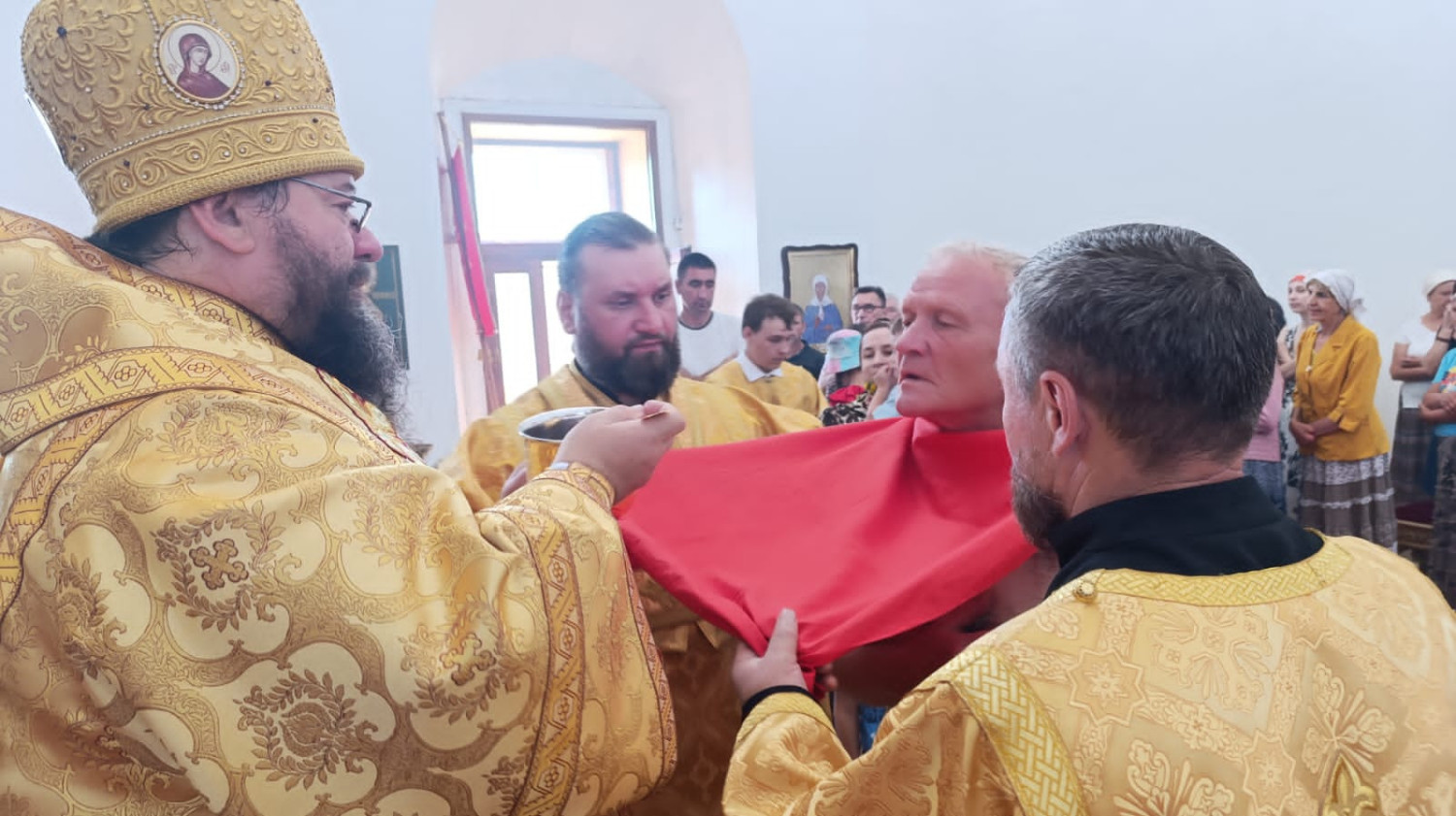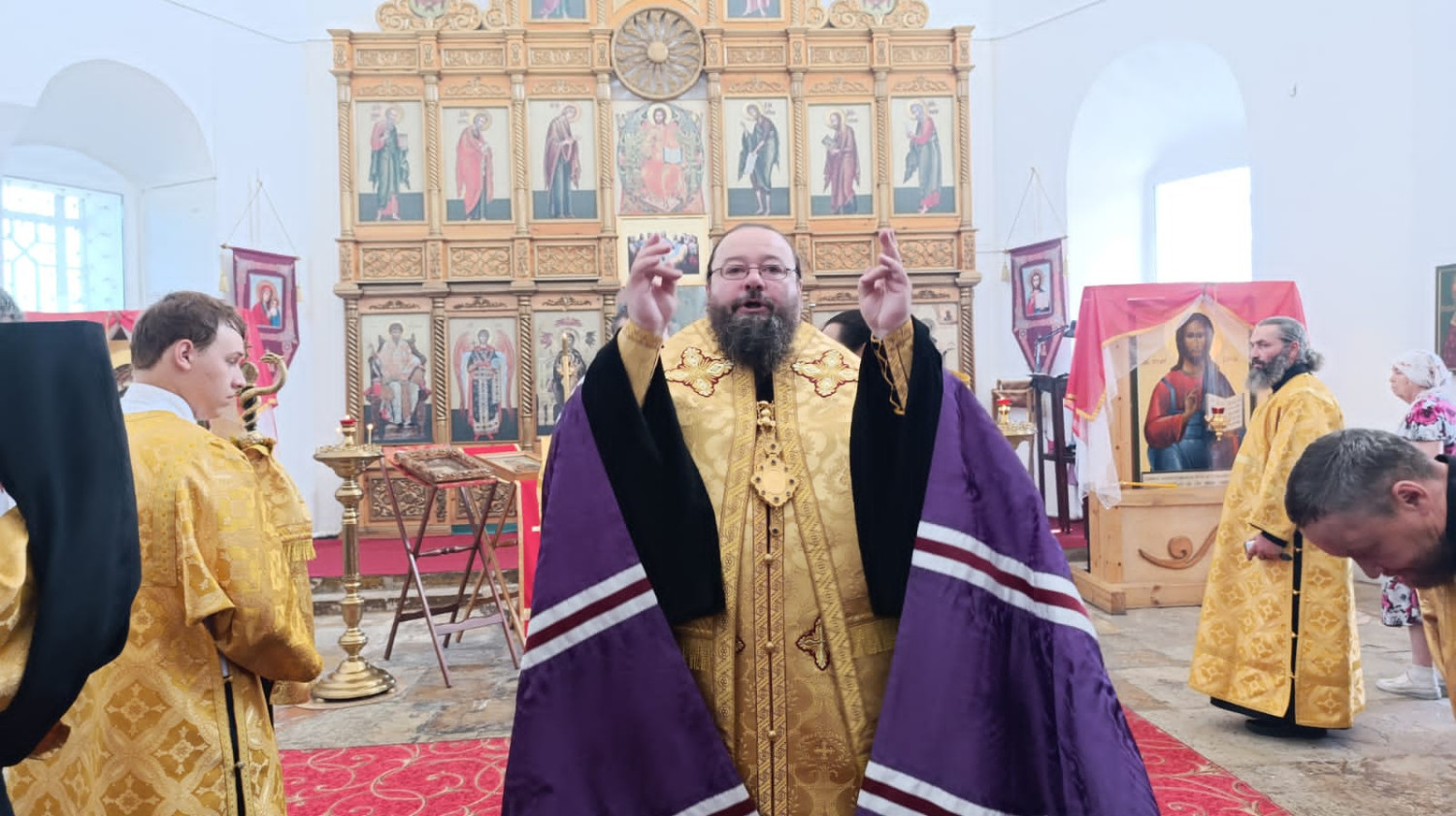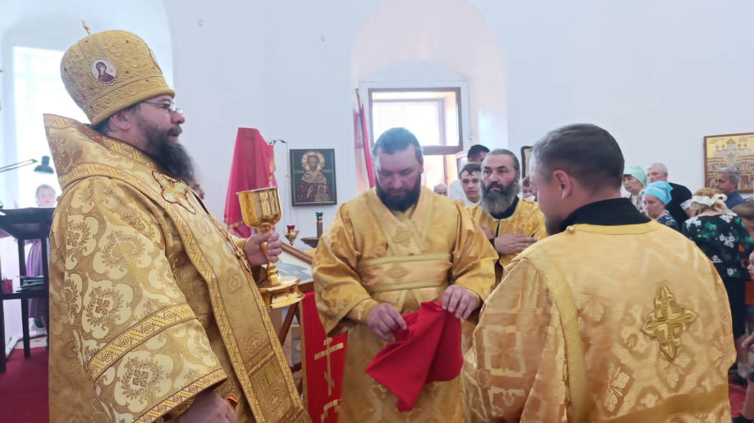 28 июля 2024 года, в Неделю 5-ю по Пятидесятнице, день памяти равноапостольного великого князя Владимира и день церковно-государственного праздника Крещения Руси, епископ Нерчинский и Краснокаменский Макарий совершил Божественную литургию в кафедральном соборе Воскресения Христова в городе Нерчинске. Его Преосвященству сослужил клирик кафедрального собора Воскресения Христова г. Нерчинска иерей Роман Пичуев. Диаконский чин: иеродиакон Пахомий (Меняйлов). Богослужебные песнопения исполнил хор кафедрального собора Воскресения Христова г. Нерчинска. По благословению Святейшего Патриарха Московского и всея Руси Кирилла на сугубой ектении были вознесены особые прошения и молитва о Святой Руси. По окончании Литургии был совершен молебен по особому чину «Последование молебного пения в праздник святого равноапостольного великого князя Владимира — воспоминания Крещения Руси». В чинопоследовании молебна содержатся молитвы к святому равноапостольному князю, благодарение Богу за то, что просветил крещением Русскую землю. После молебна управляющий Нерчинской епархией обратился к молящимся с архипастырским словом. «Сегодняшний день, пронизанный особым духовным значением, объединяющий два великих события — память равноапостольного великого князя Владимира и день церковно-государственного праздника Крещения Руси. Это день, когда мы вспоминаем о том, как святой равноапостольный князь Владимир, прозванный в народе «Красное Солнышко», в 988 году принял христианство, положив тем самым начало новой эры для Руси. Это событие, ставшее переломным моментом в истории, ознаменовало собой не просто религиозное преобразование, а глубокую трансформацию всей культуры и цивилизации. Именно крещение Руси открыло двери для проникновения в русскую землю византийской культуры, архитектуры, искусства и литературы, что повлияло на все последующие века развития русской цивилизации. Сегодня в духовной тишине кафедрального собора Нерчинска, пронизанной молитвенным трепетом, звучали слова, направленные к святому равноапостольному князю, за то, что просветил крещением Русскую землю, за то, что сделал ее частью великого христианского мира, за то, что подарил ей веру, надежду и любовь. Этот день — день воспоминания о великом прошлом Руси, день ее крещения, день ее духовного пробуждения. В этот день мы вспоминаем о том, что мы — православный народ, что вера — это то, что соединяет нас с великими предками, с великой историей, с великим будущим» — отметил в проповеди владыка Макарий. ©Нерчинская епархия