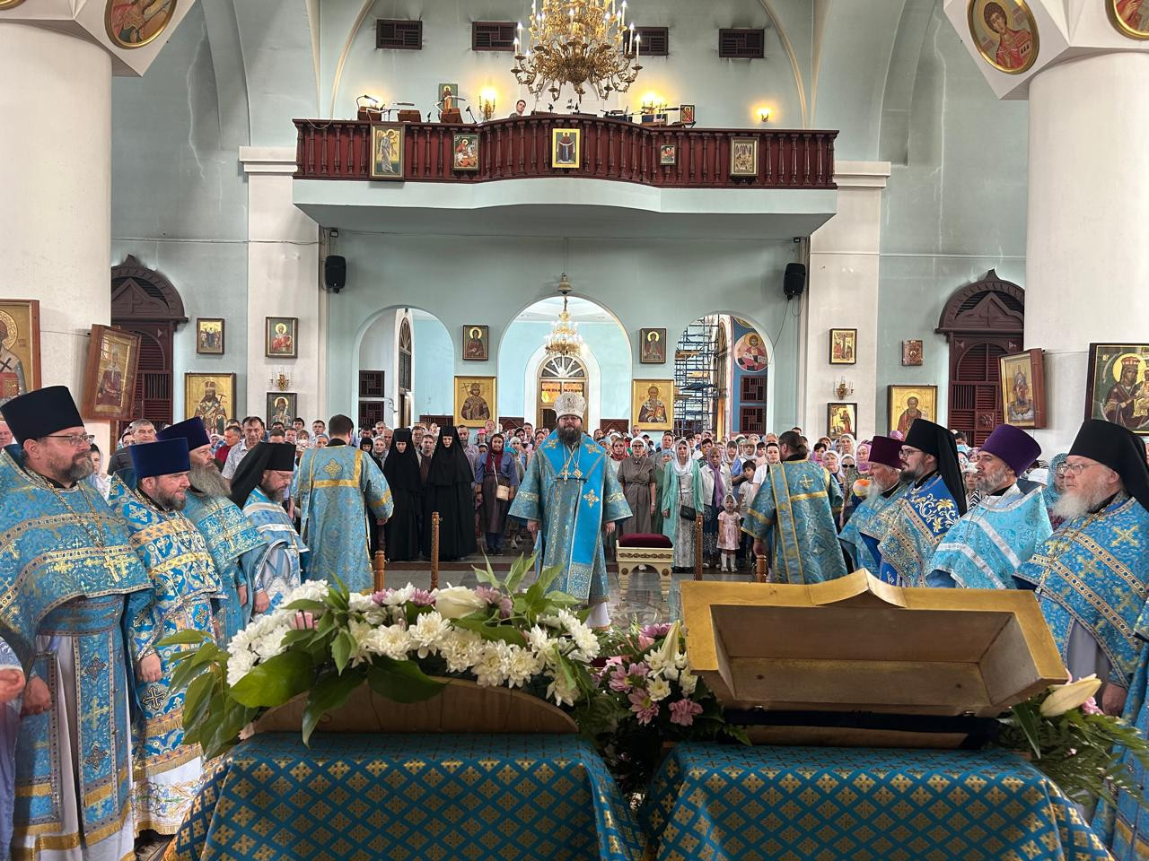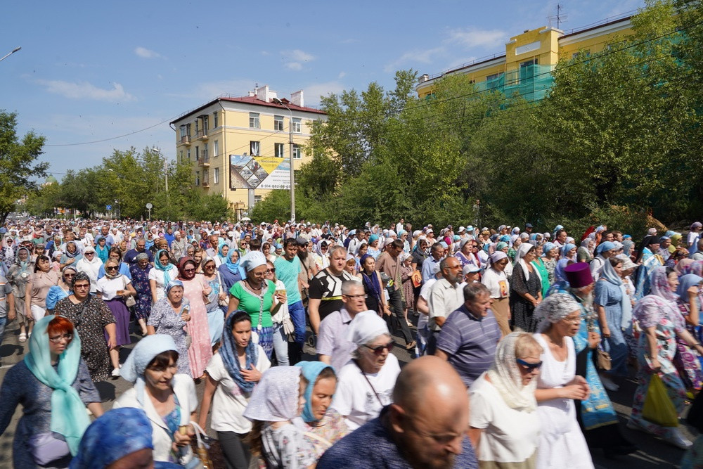 21 июля 2024 года, в Неделю 4-ю по Пятидесятнице и день празднования явления иконы Пресвятой Богородицы во граде Казани (1579), епископ Нерчинский и Краснокаменский Макарий совершил Божественную литургию в кафедральном соборе Казанской иконы Божией Матери г. Читы. Его Преосвященству сослужило духовенство Читинской и Нерчинской епархий. За богослужением молилась настоятельница женского монастыря в честь Всех святых, в земле Русской просиявших, в пгт. Атамановка Читинского района игумения Ольга (Василькова) с сестрами обители. Богослужебные песнопения исполнил хор Казанского кафедрального собора г. Читы. По благословению Святейшего Патриарха Московского и всея Руси Кирилла на сугубой ектении были вознесены особые прошения и молитва о Святой Руси. Проповедь перед причастием произнес протоиерей Андрей Федотов, клирик Казанского кафедрального собора г. Читы. По окончании Литургии епископ Макарий возглавил крестный ход от кафедрального собора до Старособорной площади (ныне площадь Декабристов), где находится часовня в честь Казанской иконы Божией Матери. Эта часовня имеет историческое значение, так как в дореволюционный период на месте этой часовни в 1866 году был воздвигнут величественный собор, посвящённый наиболее почитаемому образу Девы Марии. В годы богоборческой власти Казанский собор был уничтожен. По окончании крестного хода владыка Макарий обратился к молящимся с архипастырским словом и поздравил всех участников богослужения с праздником Казанской иконы Божией Матери. ©Нерчинская епархия