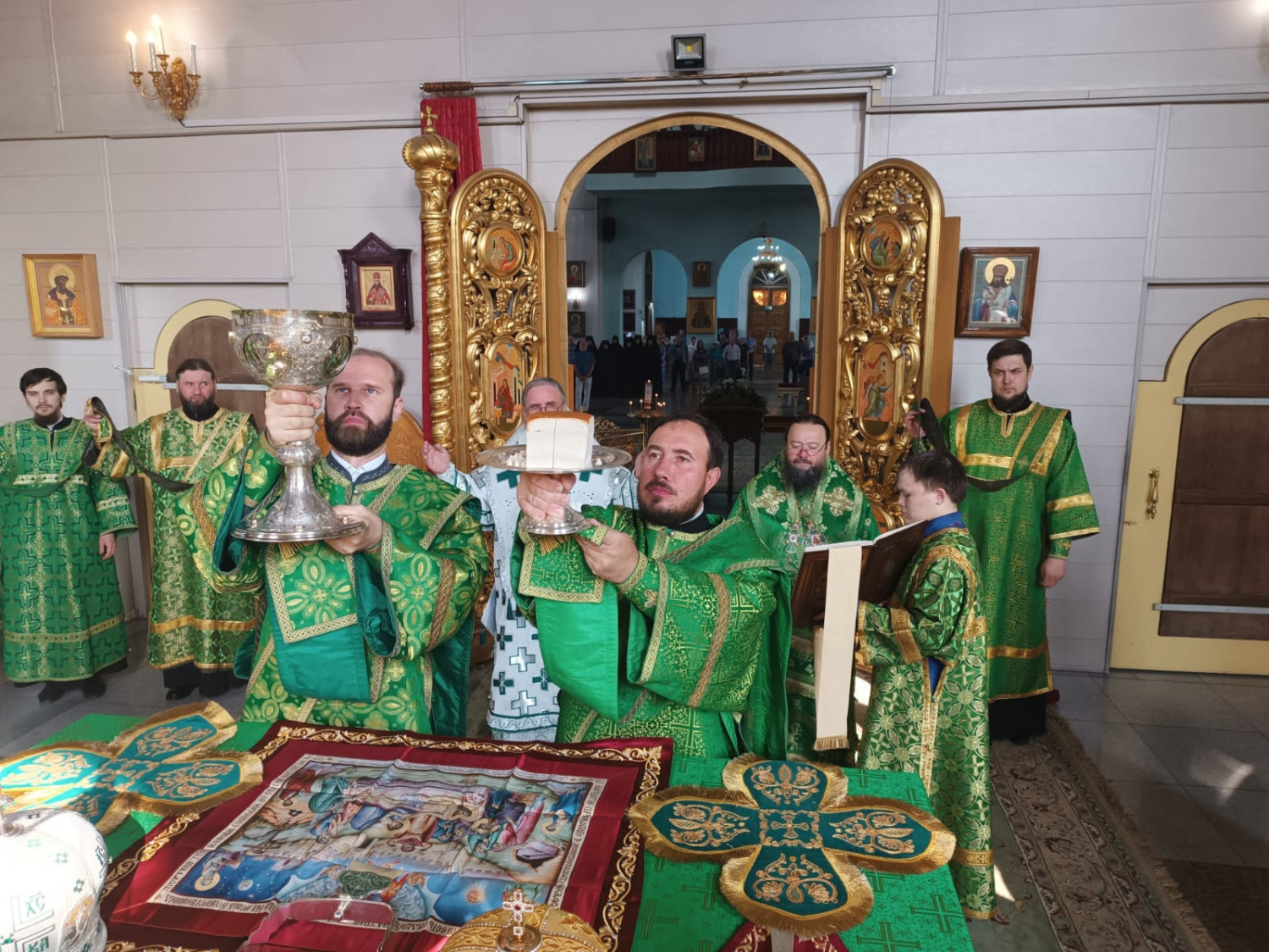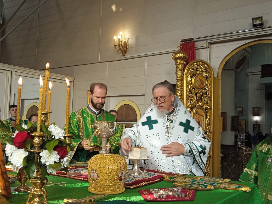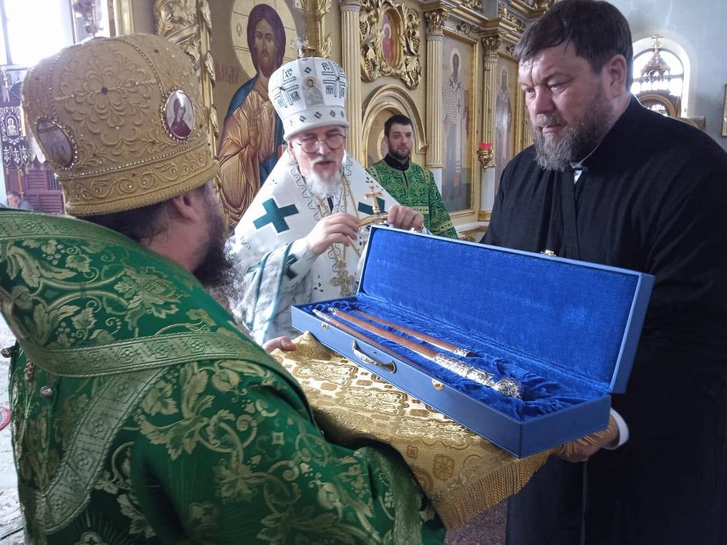 18 июля 2024 года, в день обретения честных мощей преподобного Сергия, игумена Радонежского (1422), митрополит Читинский и Петровск-Забайкальский Димитрий и епископ Нерчинский и Краснокаменский Макарий совершили Божественную литургию в кафедральном соборе Казанской иконы Божией Матери города Читы. Архипастырям сослужило духовенство Читинской, Нерчинской и Белгородской епархий. За богослужением молилась настоятельница женского монастыря в честь Всех святых, в земле Русской просиявших, в пгт. Атамановка Читинского района игумения Ольга (Василькова) с сестрами обители. Богослужебные песнопения исполнил хор Казанского кафедрального собора г. Читы. На Литургии по благословению Святейшего Патриарха Московского и всея Руси Кирилла на сугубой ектении были вознесены особые прошения и молитва о Святой Руси. По заамвонной молитве архипастыри и духовенство совершили славление преподобному Сергия Радонежского. По окончании Литургии глава Забайкальской митрополии представил управляющего Нерчинской епархией и пожелал ему благодатных успехов в служении на Нерчинской кафедре, помощи Божией. «Пусть Господь направляет Ваш путь, помогает во всех начинаниях и дарует мудрость и любовь при руководстве Нерчинской епархией. Мы рады видеть Вас на забайкальской земле и молимся о благополучии Вашего служения», — сказал митрополит Димитрий и подарил владыке Макарию архиерейский посох. В свою очередь епископ Макарий поблагодарил митрополита Димитрия и отметил, что с Божией помощью приложит все усилия для дальнейшего возрождения духовной жизни в Нерчинской епархии. Он выразил уверенность в том, что молитвы митрополита Димитрия будут являться надежной опорой в его служении. В этот день митрополит Димитрий и епископ Макарий поздравили молящихся в храме с праздником преподобного Сергия, игумена Радонежского. ©Нерчинская епархия