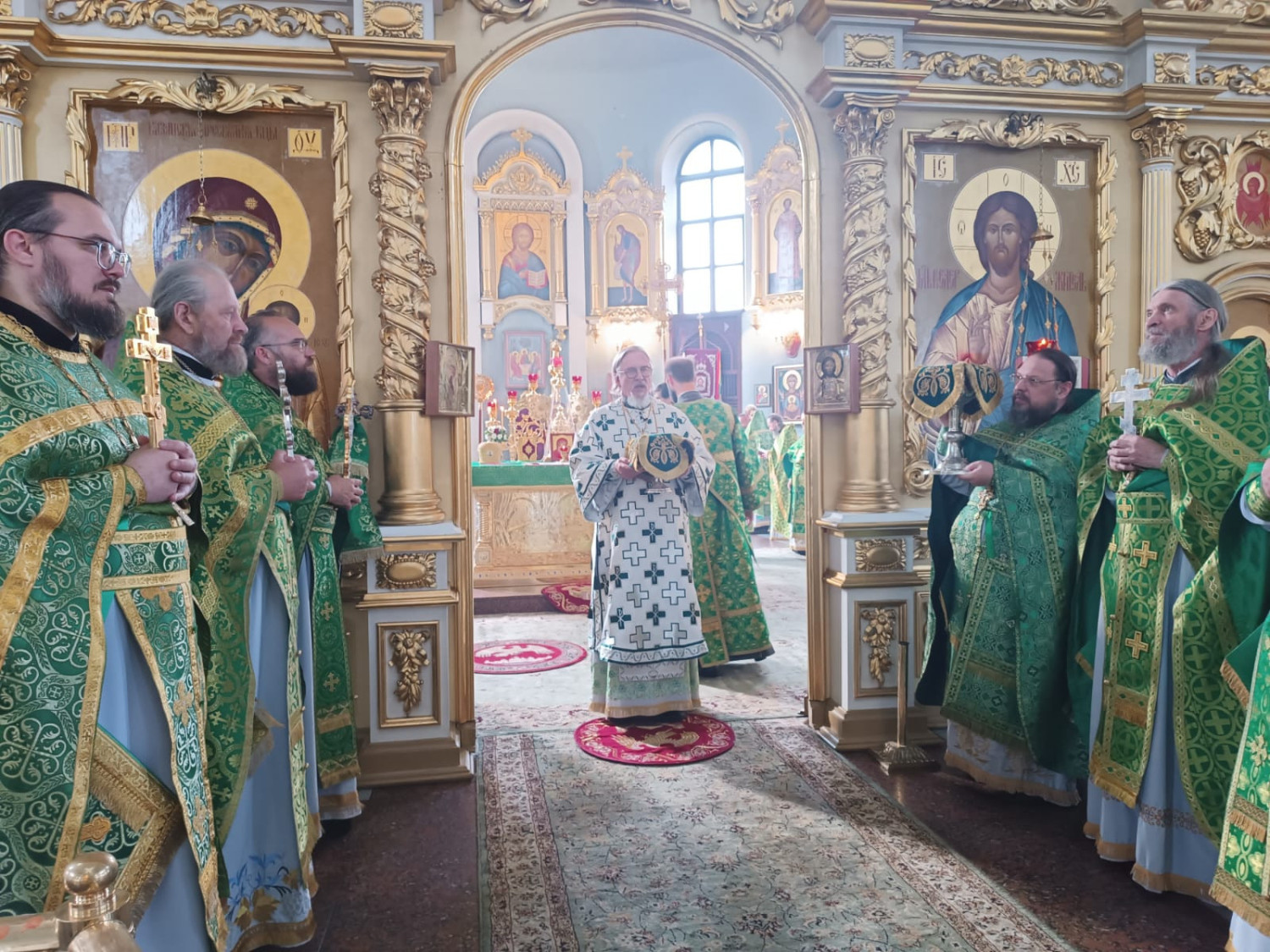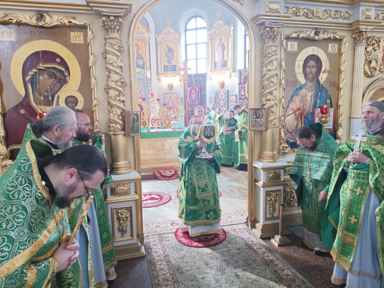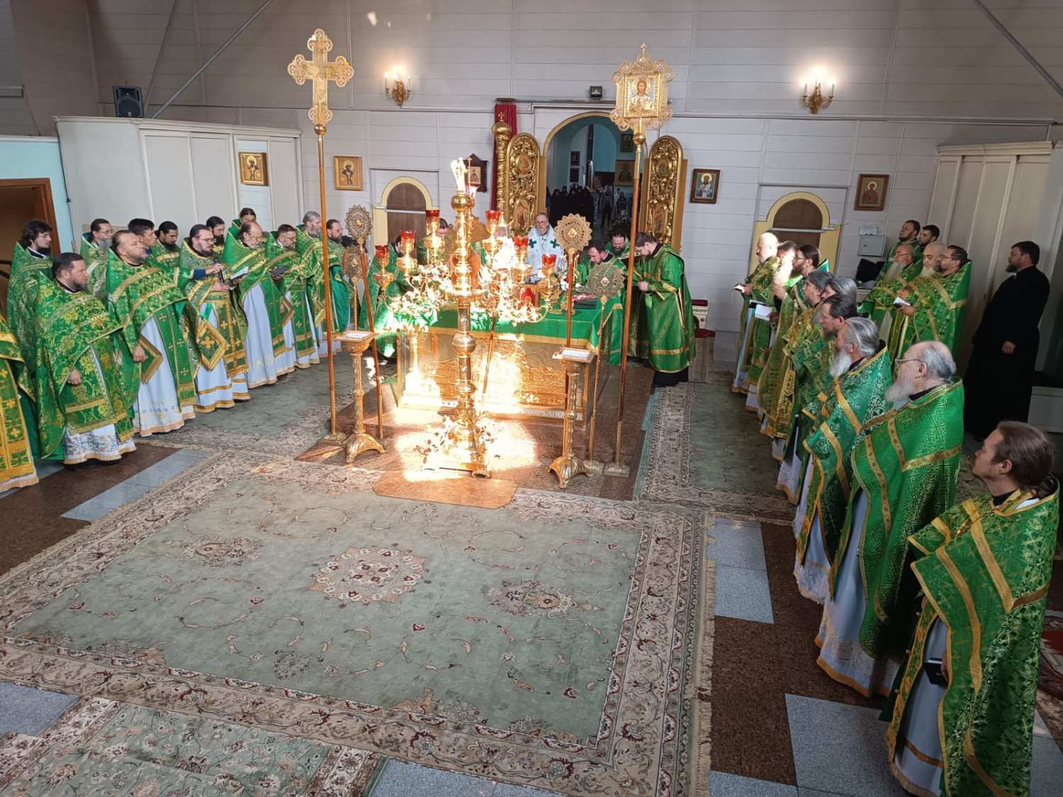 18 июля 2024 года, в день обретения честных мощей преподобного Сергия, игумена Радонежского (1422), митрополит Читинский и Петровск-Забайкальский Димитрий и епископ Нерчинский и Краснокаменский Макарий совершили Божественную литургию в кафедральном соборе Казанской иконы Божией Матери города Читы. Архипастырям сослужило духовенство Читинской, Нерчинской и Белгородской епархий. За богослужением молилась настоятельница женского монастыря в честь Всех святых, в земле Русской просиявших, в пгт. Атамановка Читинского района игумения Ольга (Василькова) с сестрами обители. Богослужебные песнопения исполнил хор Казанского кафедрального собора г. Читы. На Литургии по благословению Святейшего Патриарха Московского и всея Руси Кирилла на сугубой ектении были вознесены особые прошения и молитва о Святой Руси. По заамвонной молитве архипастыри и духовенство совершили славление преподобному Сергия Радонежского. По окончании Литургии глава Забайкальской митрополии представил управляющего Нерчинской епархией и пожелал ему благодатных успехов в служении на Нерчинской кафедре, помощи Божией. «Пусть Господь направляет Ваш путь, помогает во всех начинаниях и дарует мудрость и любовь при руководстве Нерчинской епархией. Мы рады видеть Вас на забайкальской земле и молимся о благополучии Вашего служения», — сказал митрополит Димитрий и подарил владыке Макарию архиерейский посох. В свою очередь епископ Макарий поблагодарил митрополита Димитрия и отметил, что с Божией помощью приложит все усилия для дальнейшего возрождения духовной жизни в Нерчинской епархии. Он выразил уверенность в том, что молитвы митрополита Димитрия будут являться надежной опорой в его служении. В этот день митрополит Димитрий и епископ Макарий поздравили молящихся в храме с праздником преподобного Сергия, игумена Радонежского. ©Нерчинская епархия