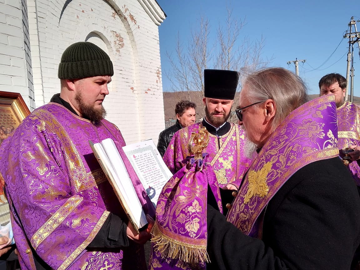 23 марта 2024 года, в субботу первой седмицы Великого поста, в день памяти святого великомученика Феодора Тирона и день памяти святых Сорока мучеников Севастийских митрополит Читинский и Петровск-Забайкальский Димитрий совершил Божественную литургию в храме святых Сорока Севастийских мучеников в пгт. Оловянная. Его Высокопреосвященству сослужили: секретарь Нерчинской епархии игумен Симеон (Зимняков) и клирик храма преподобного Сергия Радонежского г. Борзя протоиерей Ростислав Зинченко. Диаконский чин: диакон Иннокентий (Федоров) и диакон Илия Хасанов. По благословению Святейшего Патриарха Московского и всея Руси Кирилла на сугубой ектении были вознесены особые прошения и молитва о Святой Руси. Проповедь перед причастием произнес протоиерей Ростислав Зинченко. По завершении Литургии митрополит Димитрий возглавил крестный ход вокруг храма. В этот день было совершено славление и вознесена молитва святым Сорока Севастийским мученикам. По окончании богослужения глава Забайкальской митрополии поздравил прихожан храма с престольным праздником и обратился к верующим с архипастырским словом. ©Нерчинская епархия