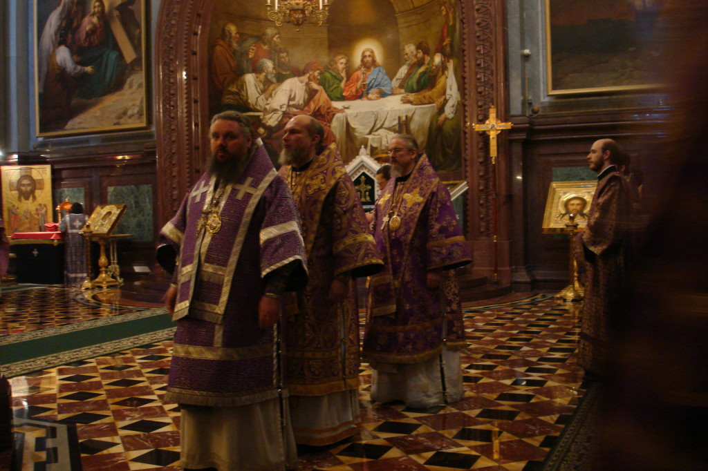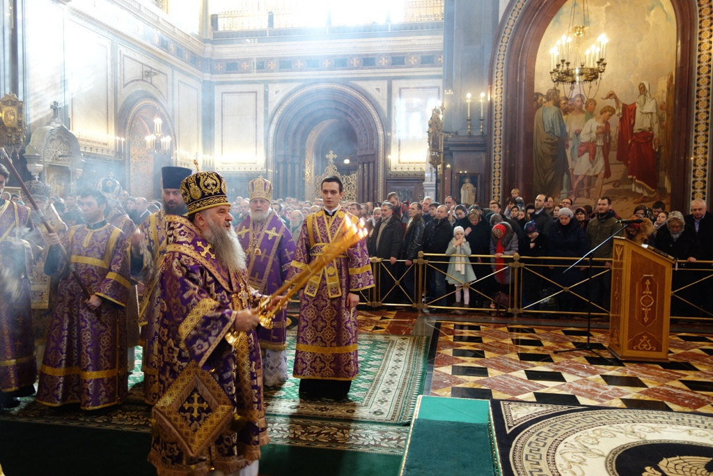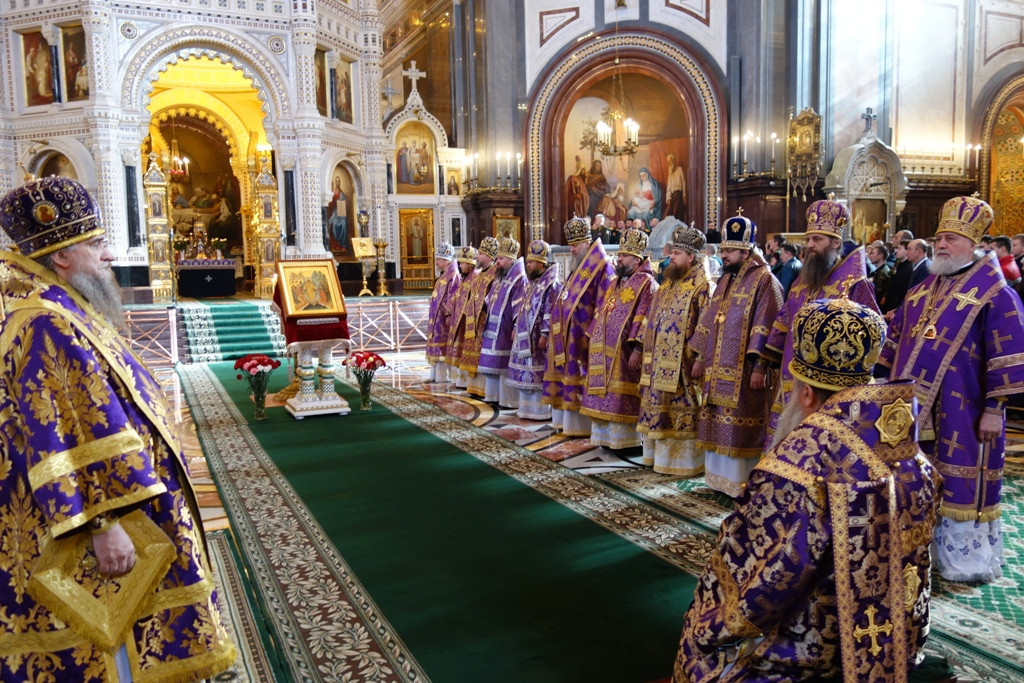 22 марта 2015 года, в Неделю 4-ю Великого поста, день памяти преподобного Иоанна Лествичника, в кафедральном соборном Храме Христа Спасителя по благословению Святейшего Патриарха Московского и всея Руси Кирилла Божественную литургию совершил управляющий делами Московской Патриархии митрополит Санкт-Петербургский и Ладожский Варсонофий в сослужении архиереев, прибывших в Москву на V курсы повышения квалификации. Курсы проводятся Общецерковной аспирантурой и докторантурой имени святых Кирилла и Мефодия по благословению Предстоятеля Русской Православной Церкви. Его Высокопреосвященству сослужили также епископ Нерчинский и Краснокаменский Димитрий. На богослужении присутствовали и причащались Святых Христовых Таин военачальники и около 600 военнослужащих Внутренних войск МВД России, отмечавшие в этот день 204-ю годовщину основания Внутренних войск. Также в этом году отмечается 1000-летие преставления святого равноапостольного князя Владимира, крестителя Руси и небесного покровителя Внутренних войск. Со словами благодарности за духовное попечение о воинах в адрес Священноначалия Русской Православной Церкви выступили генерал-полковник А.В. Бутин и генерал-полковник С.В. Бунин. Затем состоялась братская трапеза, за которой митрополит Варсонофий приветствовал собравшихся архипастырей, подчеркнув важность архиерейских курсов, проводимых Общецерковной аспирантурой. В рамках программы курсов повышения квалификации для архиереев Русской Православной Церкви, которые пройдут с 23 марта по 1 апреля, запланированы встреча слушателей со Святейшим Патриархом Московским и всея Руси Кириллом, выступления митрополитов Крутицкого и Коломенского Ювеналия, Санкт-Петербургского и Ладожского Варсонофия, Волоколамского Илариона, Ростовского и Новочеркасского Меркурия, Нижегородского и Арзамасского Георгия, руководителей синодальных отделов, представителей государственной власти, специалистов Российской академии народного хозяйства и государственной службы. По материалам сайта Общецерковной аспирантуры и Санкт-Петербургской митрополии