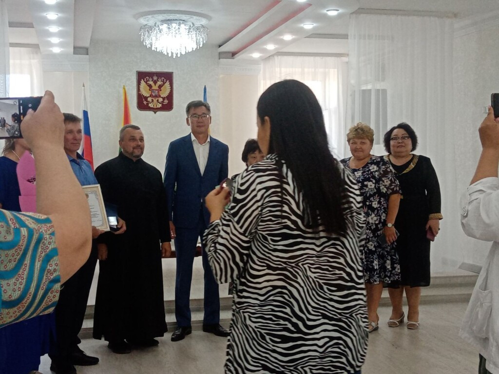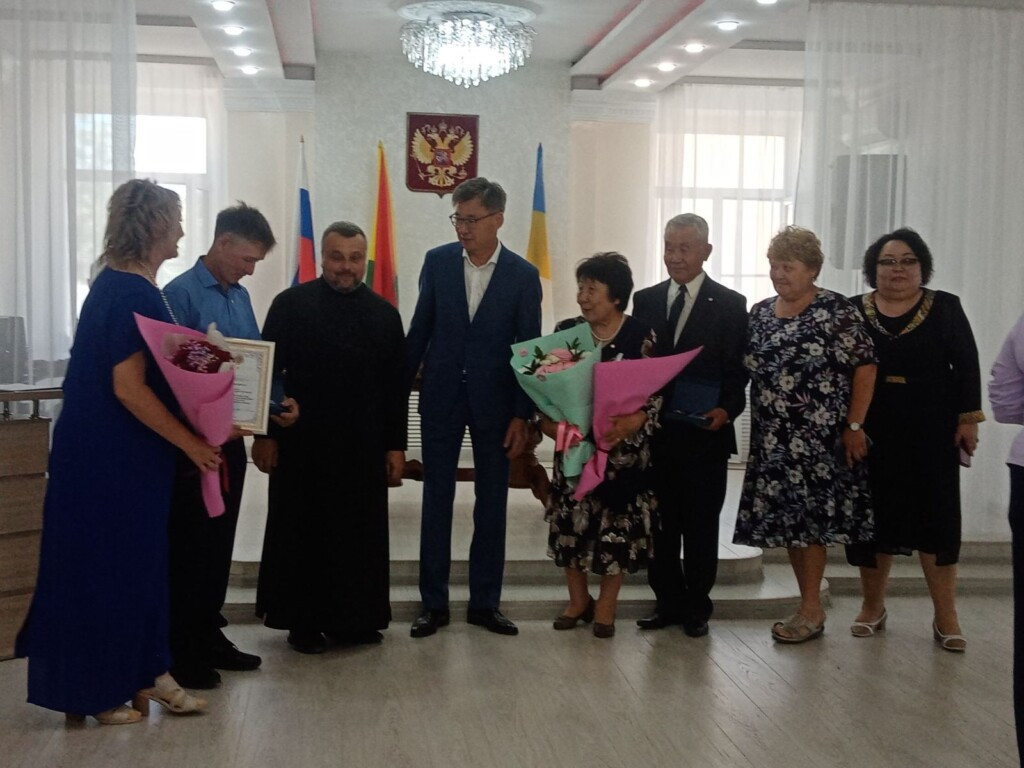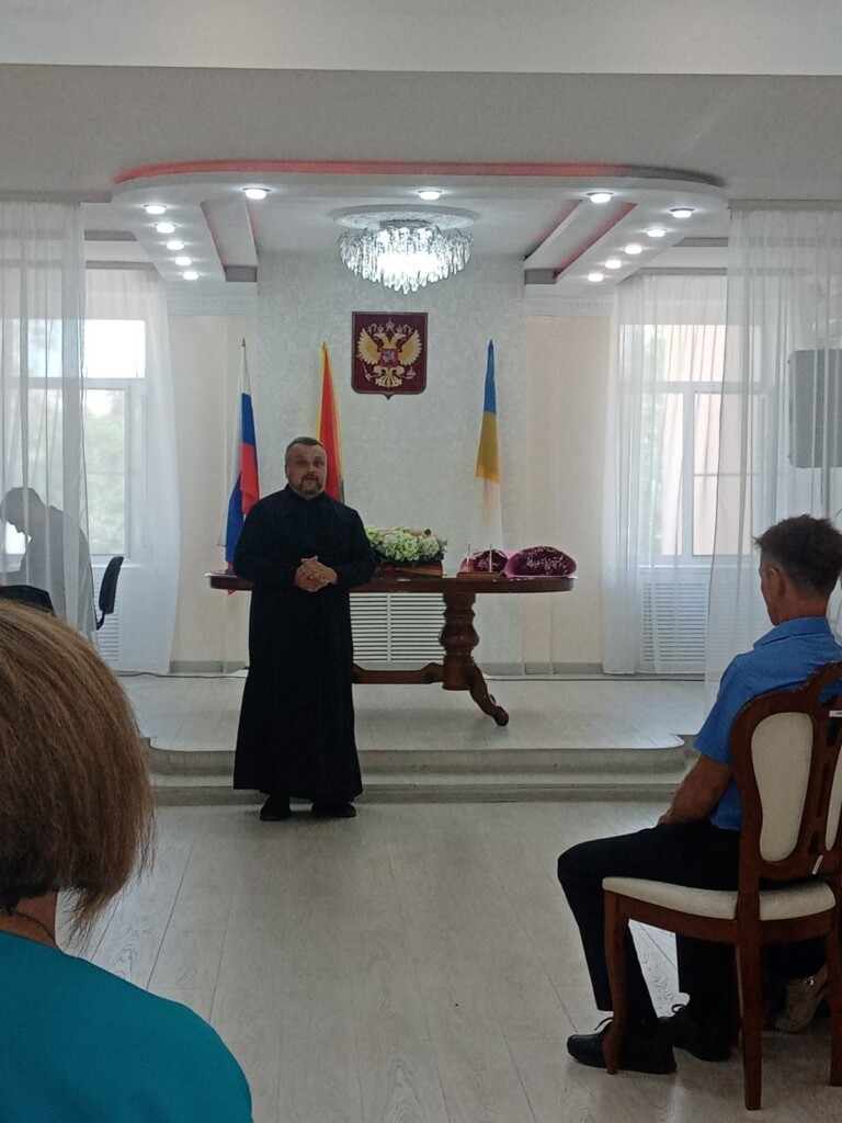 7 июля 2023 года в рамках празднования Дня семьи, любви и верности в отделе ЗАГС Агинского района прошло чествование семей. В мероприятии принял участие клирик храма святителя Николая Чудотворца пгт. Агинское диакон Андрей Окладников. Священнослужитель пожелал собравшимся в ЗАГСе семьям умножения любви и заступничества святых благоверных князей Петра и Февронии, Муромских чудотворцев. ©Нерчинская епархия