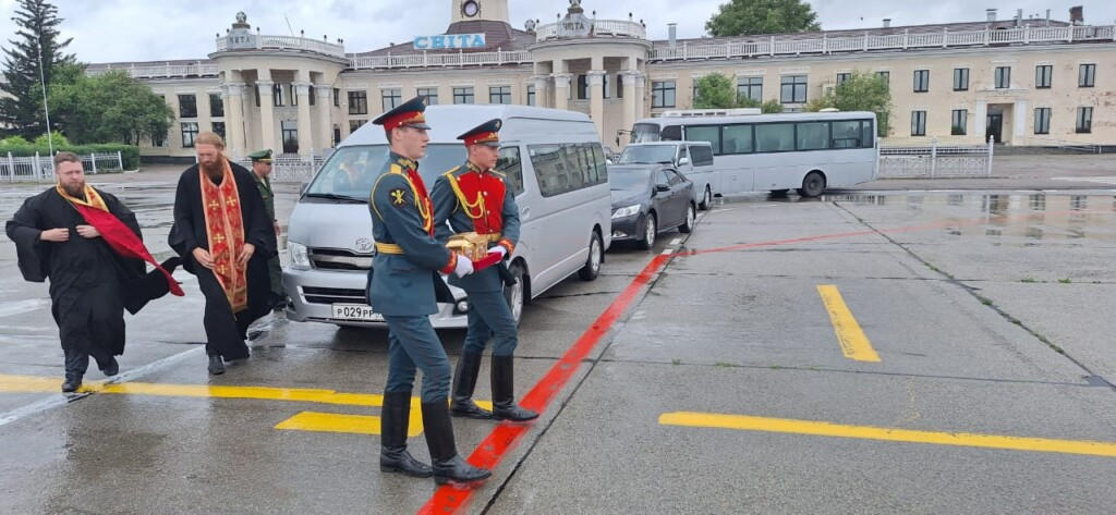 Вечером 5 июля 2023 года, ковчег с частицей мощей святого великомученика Георгия Победоносца покинул Забайкалье. В читинском аэропорту святыню проводил митрополит Читинский и Петровск-Забайкальский Димитрий. Архипастырь осенил ковчегом с мощами великомученика Георгия стороны света. Спецрейс с ковчегом отбыл в г. Благовещенск.
