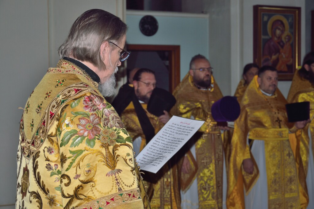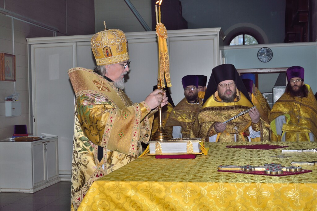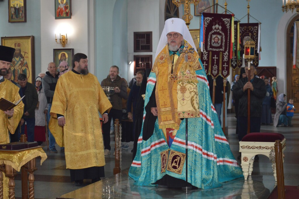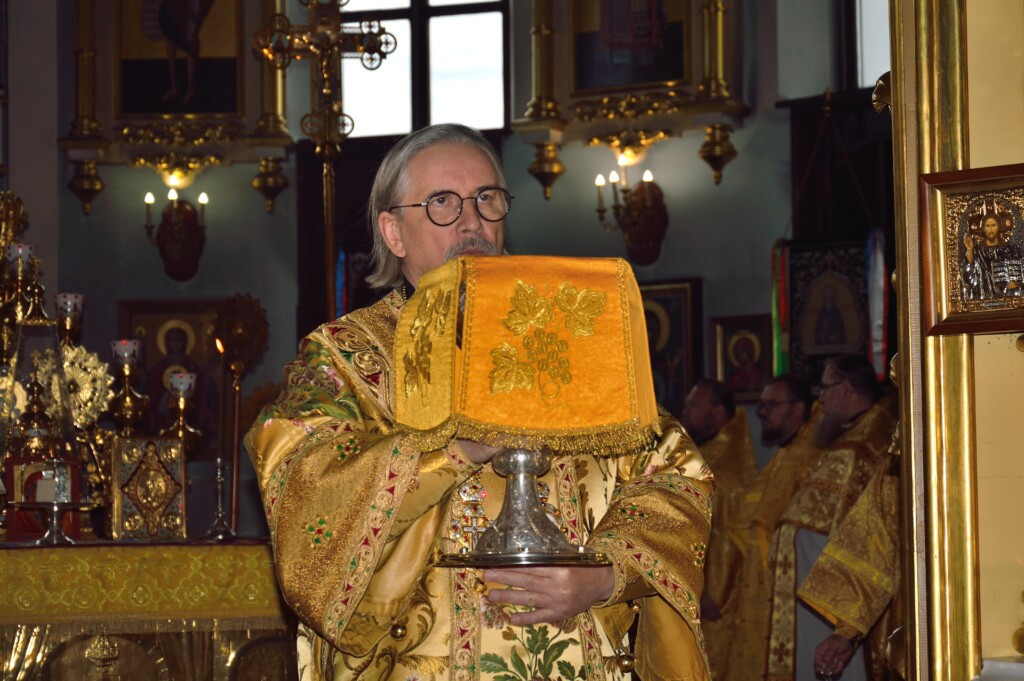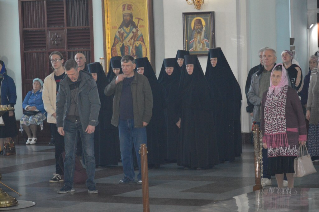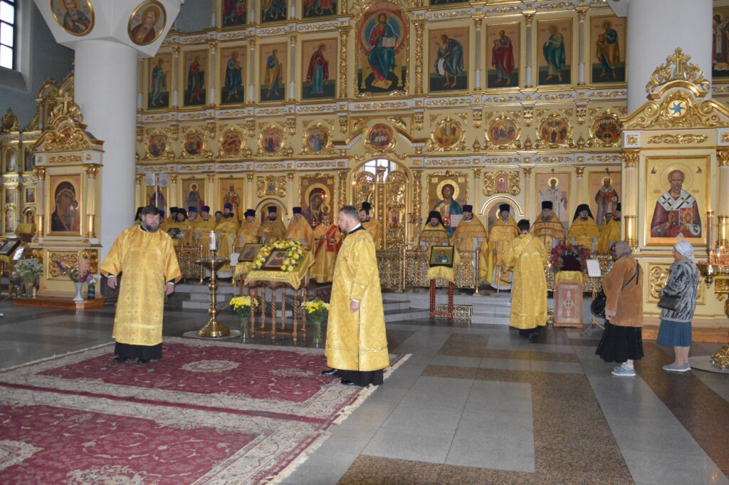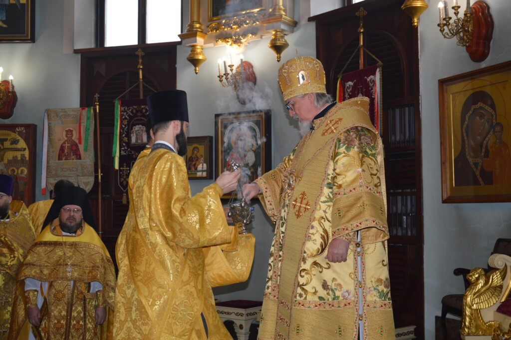 12 сентября 2023 года, в день перенесения мощей благоверного великого князя Александра Невского, митрополит Читинский и Петровск-Забайкальский Димитрий совершил Божественную литургию в кафедральном соборе Казанской иконы Божией Матери в Чите. Его Высокопреосвященству сослужило духовенство Читинской и Нерчинской епархий. Диаконский чин: иеродиакон Иннокентий (Федоров); диаконы Михаил Воробьев и Дионисий Донской. За богослужением молились насельники мужского Успенского монастыря г. Читы, настоятельница женского монастыря в честь Всех святых, в земле Русской просиявших, в пгт. Атамановка игумения Ольга (Василькова) с сестрами обители. Богослужебные песнопения исполнил хор Казанского кафедрального собора г. Читы. На малом входе митрополит Димитрий вручил Патриаршие богослужебно-иерархические награды. Указом Святейшего Патриарха Московского и всея Руси Кирилла по ходатайству митрополита Димитрия во внимание к трудам на благо Святой Церкви и в связи с 25-летием служения в сане пресвитера права служения Божественной литургии с отверстыми Царскими вратами по «Иже херувимы…» удостоен клирик кафедрального собора Казанской иконы Божией Матери города Читы протоиерей Андрей Федотов. Указом Святейшего Патриарха Московского и всея Руси Кирилла по ходатайству митрополита Димитрия во внимание к трудам по строительству храма Ватопедской иконы Божией Матери «Отрада и Утешение» права ношения палицы удостоен настоятель Успенского мужского монастыря города Читы, благочинный монастырей Читинской епархии игумен Софроний (Валов). Указом Святейшего Патриарха Московского и всея Руси Кирилла по ходатайству митрополита Димитрия во внимание к трудам на благо Святой Церкви и в связи с 50-летием со дня рождения права ношения палицы удостоен клирик храма Рождества Христова города Могоча иерей Владимир Смирнов. По благословению Святейшего Патриарха Московского и всея Руси Кирилла на сугубой ектении были вознесены особые прошения и молитва о Святой Руси. Проповедь перед причастием произнес протоиерей Михаил Андрусь, клирик кафедрального собора Казанской иконы Божией Матери г. Читы. По окончании Литургии архипастырь вручил ряд наград духовенству Забайкальской митрополии. Во внимание к трудам по строительству храма святителя Спиридона Тримифунтского поселка Даурия настоятель соборного храма Спаса Нерукотворного Образа города Краснокаменска игумен Симеон (Зимняков) удостоен Патриаршей награды – Ордена Русской Православной Церкви преподобного Сергия Радонежского III степени. Во внимание к мужественному несению архипастырского служения в военных условиях клирик соборного храма Спаса Нерукотворного Образа г. Краснокаменска протоиерей Ростислав Зинченко удостоен Патриаршей награды – медали ордена благоверного князя Димитрия Донского. Во внимание к мужественному несению архипастырского служения в военных условиях настоятель храма благоверного князя Димитрия Донского с. Домна, насельник Успенского мужского монастыря города Читы иеромонах Александр (Михайлов) удостоен Патриаршей награды – медали ордена благоверного князя Димитрия Донского.Установить изображение записи Во внимание к трудам по строительству войскового казачьего храма великомученика Димитрия Солунского города Читы настоятель храма великомученика Дими