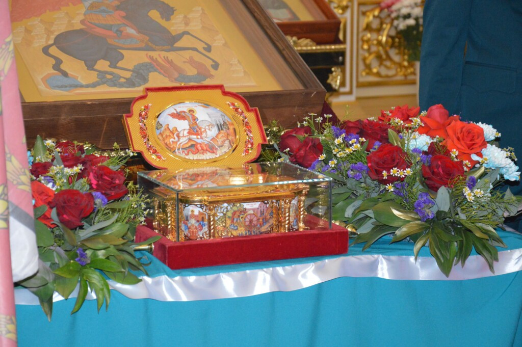 5 июля 2023 года, в среду седмицы 5-й по Пятидесятнице, митрополит Читинский и Петровск-Забайкальский Димитрий совершил Божественную литургию в храме преподобного Сергия Радонежского г. Борзя Нерчинской епархии. Его Высокопреосвященству сослужило духовенство Читинской и Нерчинской епархий. За богослужением молились военнослужащие и многочисленные верующие. По благословению Святейшего Патриарха Московского и всея Руси Кирилла на сугубой ектении были вознесены особые прошения и молитва о Святой Руси. Проповедь перед причастием произнес иерей Антоний Горбунов. По окончании Литургии в рамках Всероссийского молебна о Победе был совершен молебен великомученику Георгию Победоносцу. Митрополит Димитрий прочитал молитву великомученику о даровании российскому воинству Победы. В этот день на мощах великомученика Георгия Победоносца архипастырь освятил знамена. Глава Забайкальской митрополии обратился к молящимся с архипастырским словом. «Молебен о Победе который совершается с 6 мая 2023 года – это наше общее делание, наше общее стояние за Победу», — сказал архипастырь. Также Владыка подарил храму икону великомученика Георгия Победоносца.