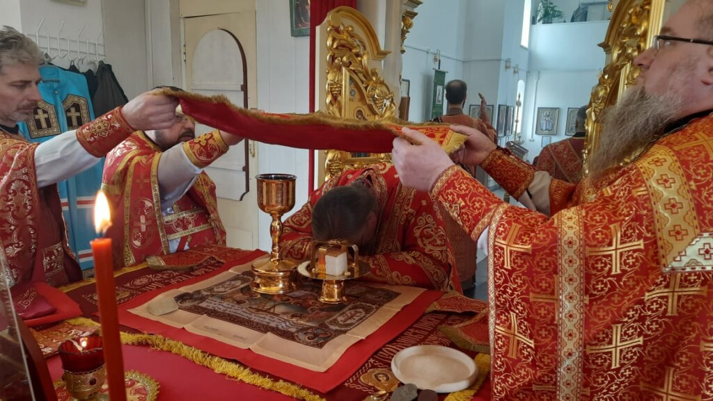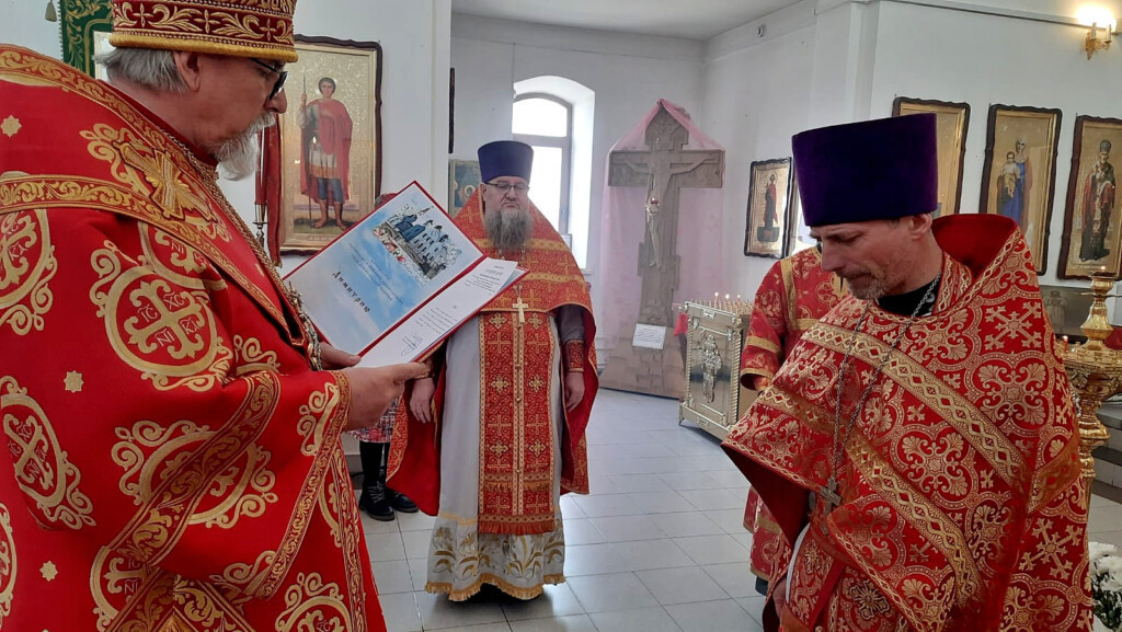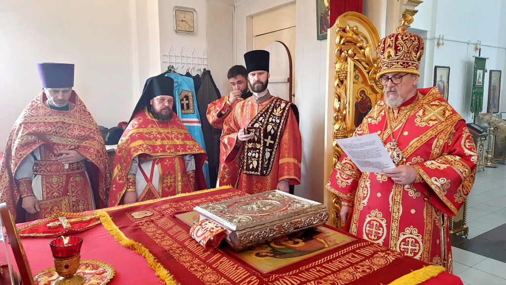 24 апреля 2023 года, в понедельник 2-й седмицы по Пасхе, митрополит Читинский и Петровск-Забайкальский Димитрий, временно управляющий Нерчинской епархией совершил Божественную литургию в храме преподобного Сергия Радонежского города Борзя. Архипастырю сослужили секретарь Нерчинской епархии игумен Симеон (Зимняков), настоятель храма святого благоверного царевича Димитрия в пгт. Ясногорск Оловяннинского района протоиерей Виталий Бушин, клирик храма преподобного Сергия Радонежского г. Борзя протоиерей Ростислав Зинченко. Диаконский чин: иеродиакон Иннокентий (Федоров), диакон Андрей Окладников, диакон Дионисий Донской, диакон Никита Евграфов. На малом входе митрополит Димитрий наградил клирика храма преподобного Сергия Радонежского г. Борзя протоиерея Ростислав Зинченко, за исполнение пастырского долга в зоне проведения специальной военной операции, к празднику Святой Пасхи медалью III-й степени «За усердные труды в Читинской епархии Русской Православной Церкви». На Литургии по благословению Святейшего Патриарха Московского и всея Руси Кирилла на сугубой ектении были вознесены особые прошения и молитва о Святой Руси. Проповедь перед причастием произнес протоиерей Ростислав Зинченко. По окончании Литургии глава Забайкальской митрополии возглавил крестный ход вокруг храма и обратился к молящимся с архипастырским словом. ©Нерчинская епархия