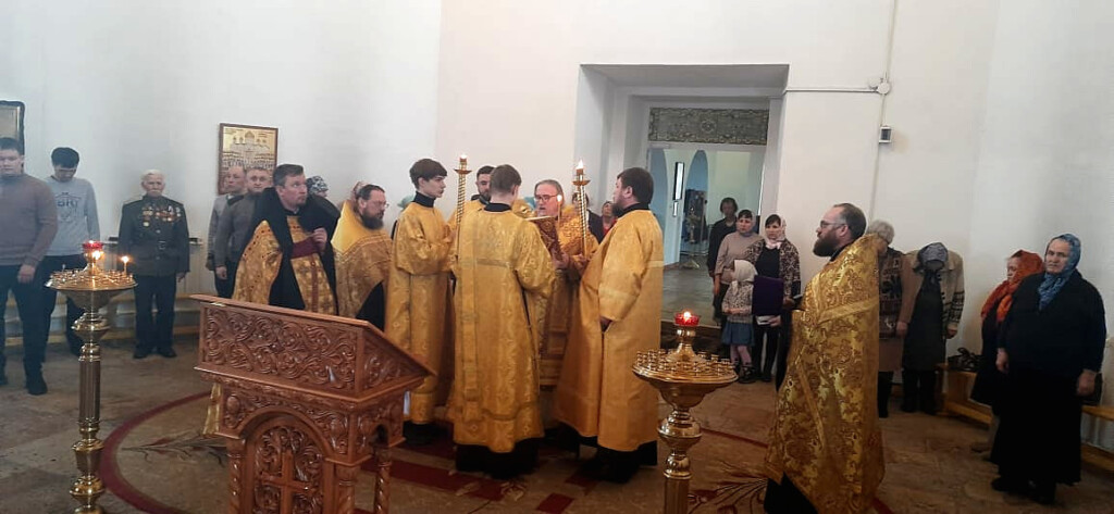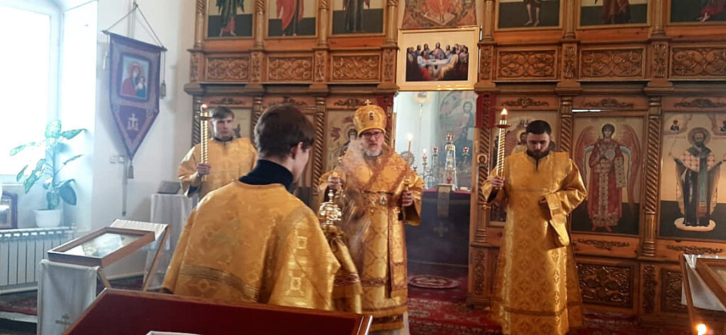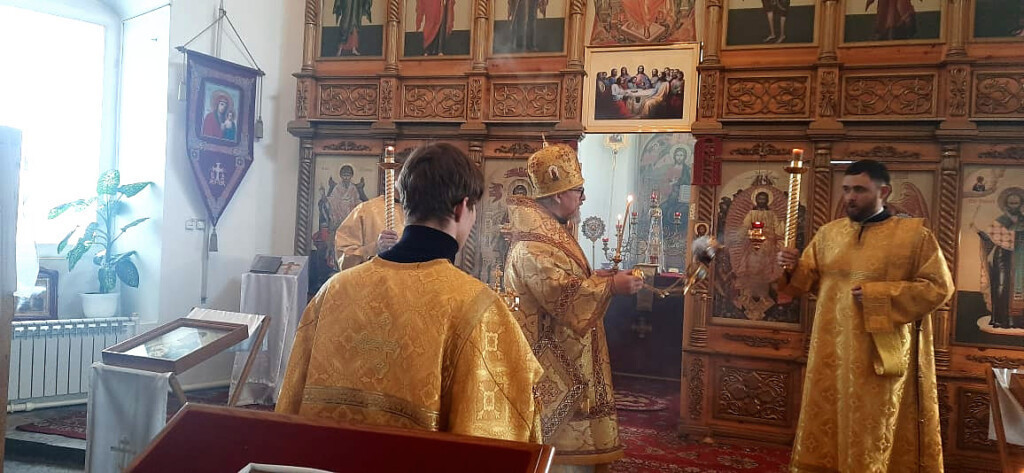 Вечером 22 февраля 2023 года, в день обретения мощей святителя Иннокентия, епископа Иркутского, накануне четверга сырной седмицы, митрополит Читинский и Петровск-Забайкальский Димитрий, временно управляющий Нерчинской епархией, совершил всенощное бдение в кафедральном соборе в честь Воскресения Христова в городе Нерчинск. По благословению митрополита Димитрия служба совершалась святителю Иннокентию, епископу Иркутскому. Его Высокопреосвященству сослужили секретарь Нерчинской епархии игумен Симеон (Зимняков), благочинный Чернышевского церковного округа Нерчинской епархии протоиерей Андрей Кисов, клирик Казанского кафедрального собора г. Читы иеромонах Иона (Ларин). Диаконский чин: клирики Казанского кафедрального собора г. Читы диакон Дионисий Донской и диакон Иоанн Петровский. Во время всенощного бдения были совершены вечерня, лития с освящением хлебов, вина и елея, а также утреня с чтением Евангелия и помазанием всех молящихся освященным елеем. По окончании богослужения глава Забайкальской митрополии обратился к верующим с архипастырским словом. ©Нерчинская епархия