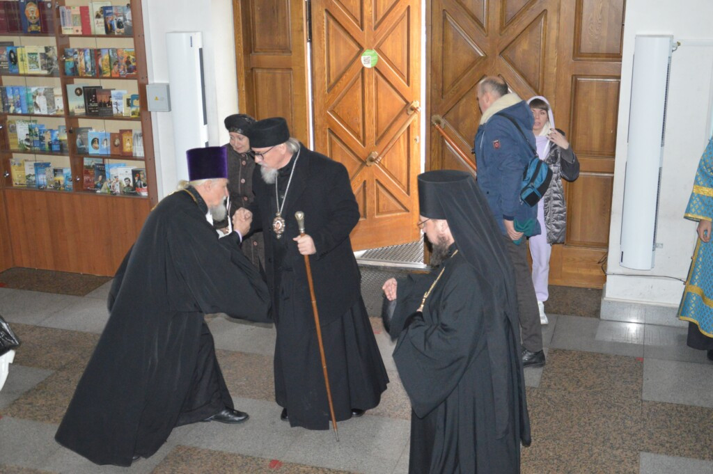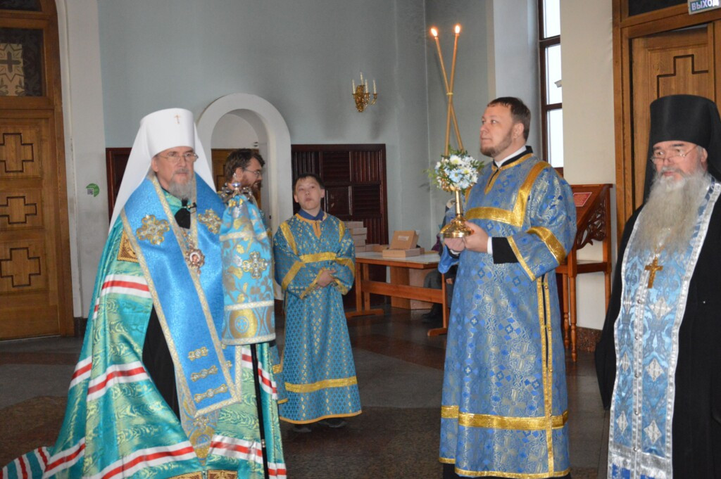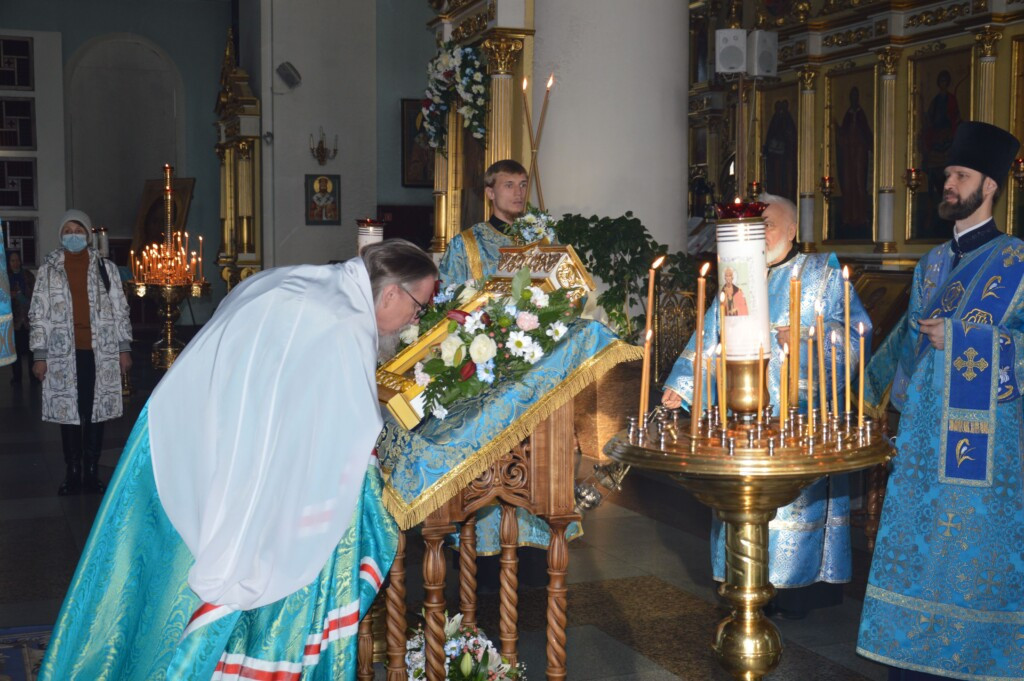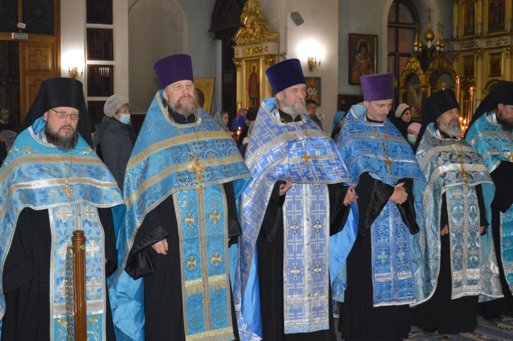 3 ноября 2022 года, накануне дня празднования Казанской иконы Божией Матери, митрополит Читинский и Петровск-Забайкальский Димитрий возглавил служение всенощного бдения в кафедральном соборе Казанской иконы Божией Матери города Читы. Его Высокопреосвященству сослужило духовенство Читинской и Нерчинской епархий. Диаконский чин: иеродиаконы Иннокентий (Федоров) и Иринарх (Козлов); диаконы Михаил Воробьев, Георгий Витковский, Дионисий Донской, Никита Евграфов и Иоанн Петровский. Богослужебные песнопения исполнил хор Казанского кафедрального собора г. Читы. Во время всенощного бдения были совершены вечерня, лития с освящением хлебов, вина и елея и утреня с чтением Евангелия и помазанием всех молящихся освященным елеем. ©Нерчинская епархия