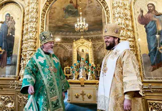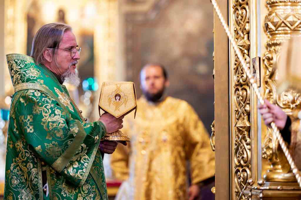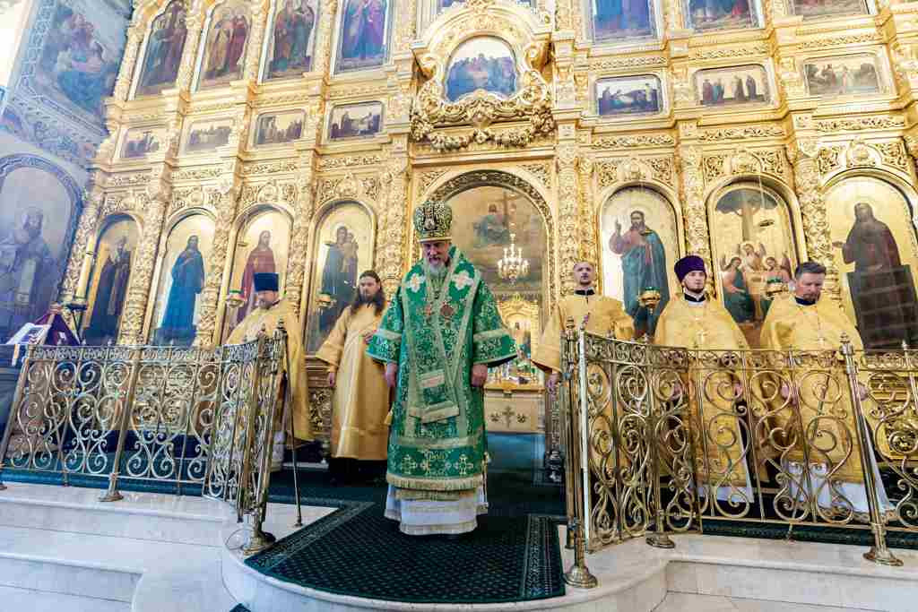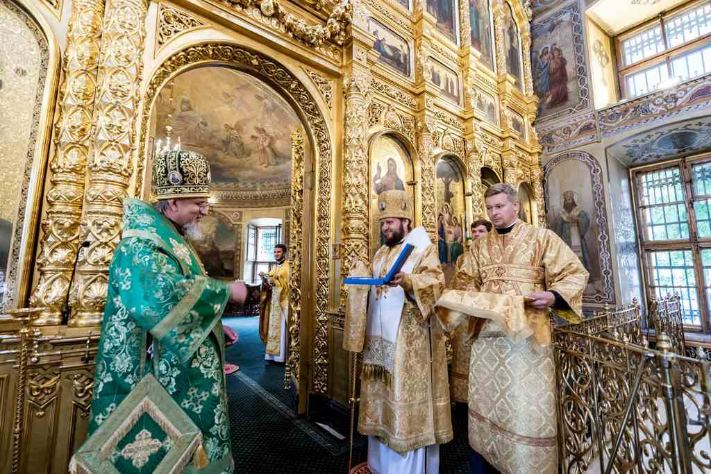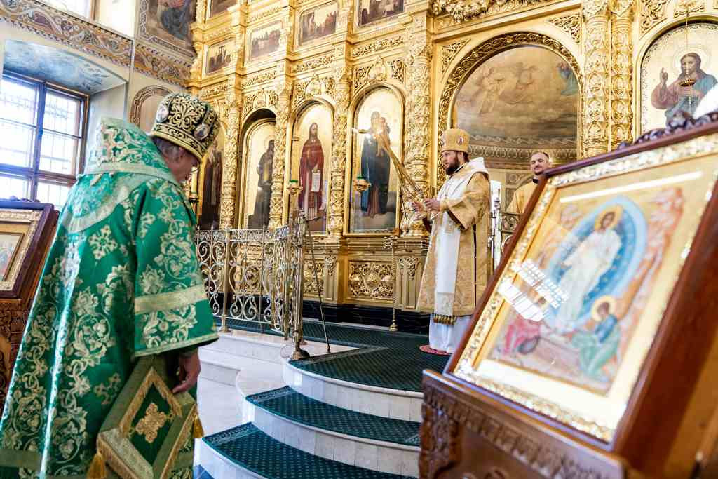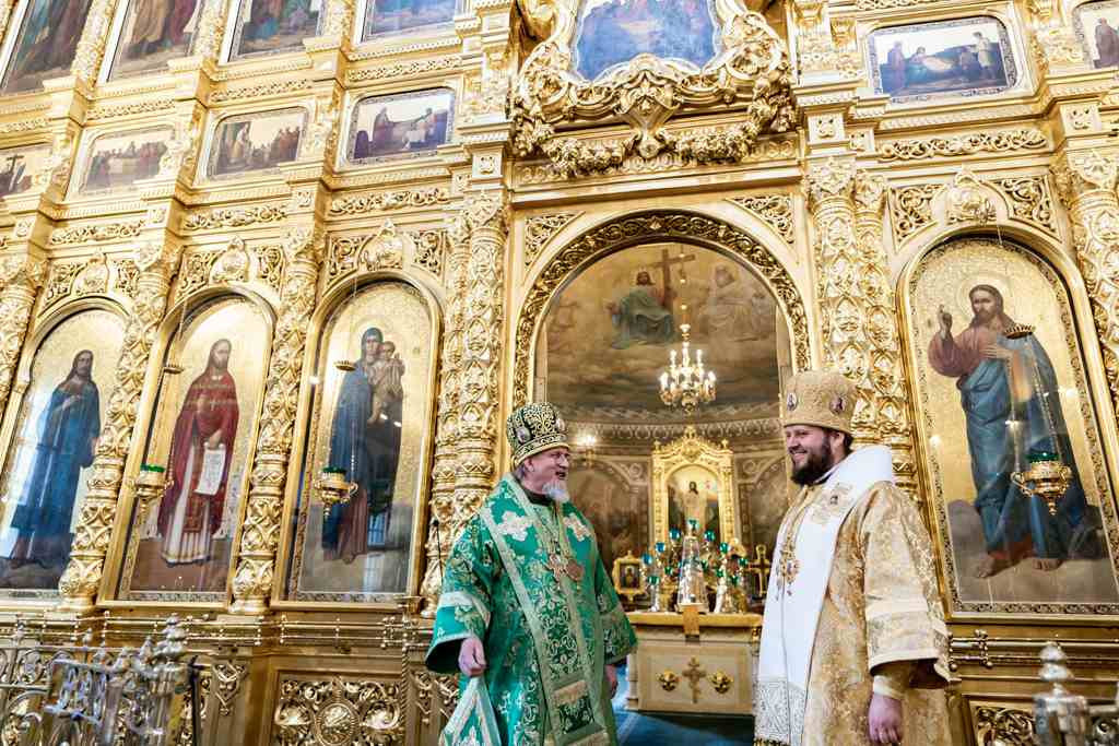 17 июля 2022, в Неделю 5-ю по Пятидесятнице, в день памяти страстотерпцев Императора Николая II, Императрицы Александры, царевича Алексия, великих княжен Ольги, Татианы, Марии, Анастасии и страстотерпца праведного Евгения врача, митрополит Читинский и Петровск-Забайкальский Димитрий, временно управляющий Нерчинской епархией и архиепископ Подольский и Люберецкий Аксий совершили Божественную литургию в Троицком кафедральном соборе города Подольска. Высокопреосвященнейшим владыкам сослужили клирики Подольской епархии, а также клирик Читинской епархии иеромонах Иона (Ларин). По сугубой ектении была вознесена молитва о восстановлении мира. По благословению Святейшего Патриарха Московского и всея Руси Кирилла эта сугубая молитва читается во всех храмах Русской Православной Церкви. По окончании богослужения архиепископ Аксий обратился к молящимся с архипастырским словом о святом страстотерпце Императоре Николае II. «Святой мученик Николай со своим семейством являет нам добрый пример того, как нужно принимать и переносить скорби и поношения, до последней минуты заботясь не о своей судьбе, а о судьбе своего Отечества», — сказал управляющий Подольской епархией. Также архиепископ Аксий обратился со словами благодарности к митрополиту Димитрию и на память о совместной богослужебной молитве подарил Его Высокопреосвященству панагию. В ответном слове митрополит Димитрий поблагодарил архиепископа Аксия за теплый прием и преподнес ему подарок в память о Забайкалье. Напомним, что архиепископ Аксий возглавлял Нерчинскую епархию с 2017 по 2019 год. По материалам сайта Подольской епархии ©Нерчинская епархия