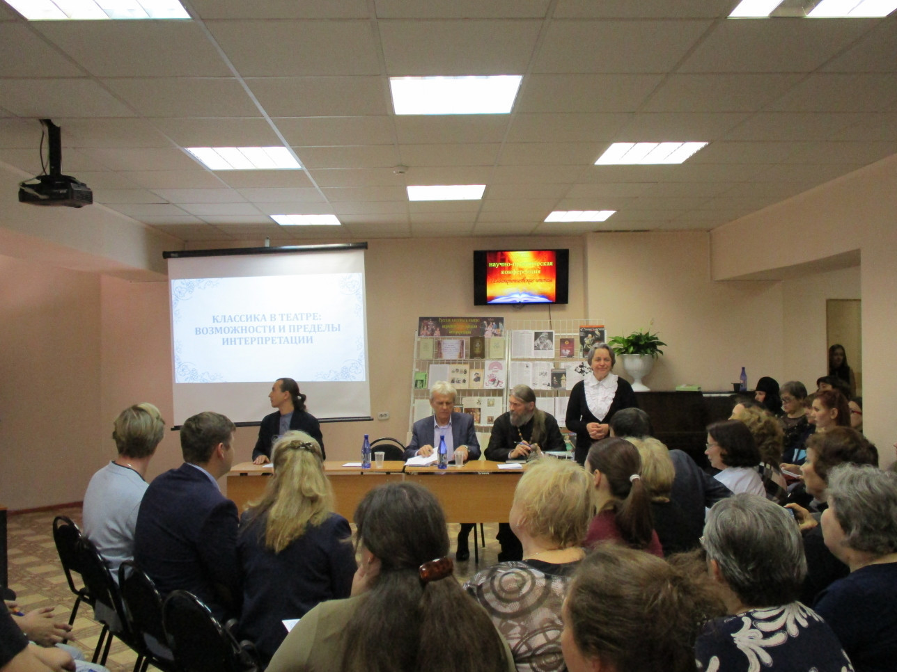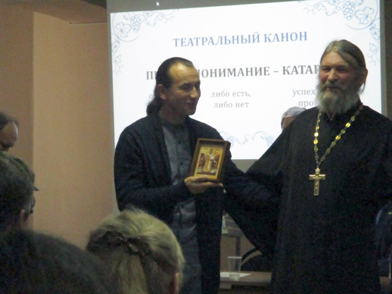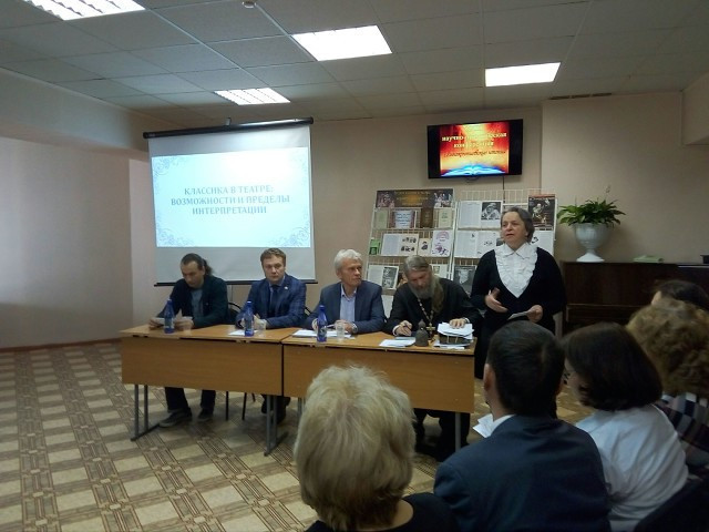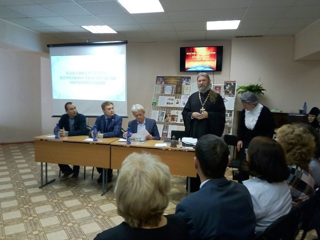 7 октября 2019 года в Центральной городской библиотеке им. А.П. Чехова состоялись XXIII «Иннокентиевские чтения», которые проводит кафедра литературы ЗабГУ совместно с Забайкальской митрополией. Тема чтений: «Классика в театре: возможности и пределы интерпретаций» определила гостей мероприятия. Ими стали не только почитатели театра, но и его деятели: художественный руководитель Забайкальского краевого драматического театра – Николай Гадомский, художественный руководитель музыкального театра «Забайкальские узоры» – Николай Сыроватка, главный режиссер театра кукол «Тридевятое царство» – Александр Поветкин, а также актёры и другие работники театра. Иннокентиевские чтения – дискуссионное событие, участники которого пытались определить возможности и пределы интерпретации классики. В ходе обсуждения задавались вопросы о том, чего не должно быть в театре. Каковы роли автора, режиссёра и актёров в судьбе спектакля? Способен ли театр воспитать зрителя? Позволительно ли режиссёру «уходить» от первоначального источника? Отвечая на эти вопросы, участники обращались к таким театральным постановкам как «Горе от ума», «Дубровский», «Соловей и роза», которые были представлены ранее на фестивале «Крылья будущего». Все три спектакля во многом являются новаторскими, отличаются необычным подходом к костюмам, сюжетам, выбору актёров. Эти спектакли являют собой авторскую интерпретацию классики. Зрители отмечали, что постановки нередко разрушали уже сложившиеся в их сознании образы литературных героев, заставляли по-новому посмотреть на них, открыть новые темы в произведениях. Особенно удачной интерпретацией классики по мнению многих зрителей стал спектакль театра кукол, который не только помог вновь влюбиться в текст Оскара Уайльда, но и разрушил шаблон о театре кукол, как развлечении для детей. В ходе обсуждения поднимались всё новые и новые вопросы, темы и проблемы. Дискуссию вряд ли можно назвать исчерпывающей, однако можно заключить, что безграничные возможности интерпретации классического текста всё же должны иметь некоторые пределы. Например, недопустимо разрушать архетипическое ядро художественного произведения, привносить в текст ложные, пошлые смыслы, лишать авторский текст присутствия автора. Несомненно, спектакль – это диалог писателя и режиссёра, актеров и зрителей. В результате этого диалога возникает новое произведение театрального искусства, которое живо и прекрасно, если оно способно посеять в душе зрителей доброе семя. Руководитель отдела религиозного образования и катехизации протоиерей Павел Матвеев высоко оценил работу читинских театров и преподнёс в дар икону Святителя Иннокентия Московского Александру Поветкину, главному режиссеру театра кукол «Тридевятое царство». На этой положительной ноте XXIII Иннокентиевские чтения подошли к концу.