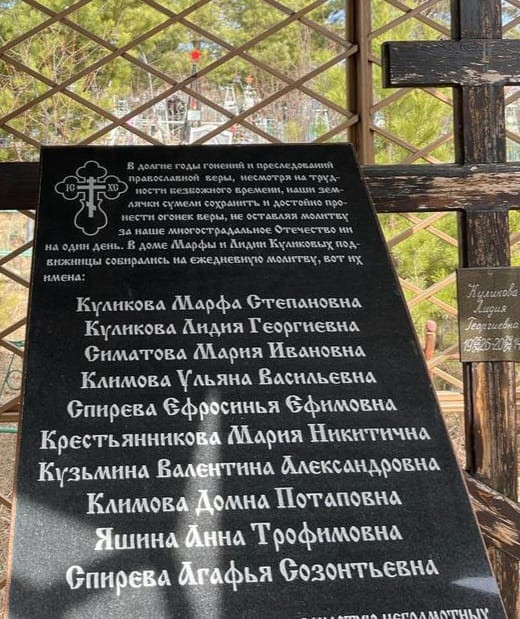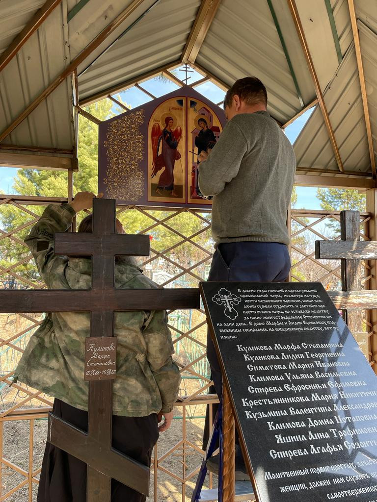 30 апреля 2023 года, в день святых жен-мироносиц, настоятель храма святых первоверховных апостолов Петра и Павла г. Шилка протоиерей Александр Тылькевич совершил панихиду в часовне-усыпальнице на шилкинском кладбище. Также этот день в часовне-усыпальнице была установлена икона Благовещения Пресвятой Богородицы. Часовня, изготовленная по типу беседки в 2017 году на могилах жительниц города Шилка Марфы и Лидии Куликовых. Благодаря Марфе и Лидии в Шилке существовала православная община в период развернувшейся в прошлом веке кампании антирелигиозного преследования. 31 июля 2022 года прихожане Петропавловского храма установили мемориальную доску в часовне-усыпальнице. На памятной гранитной доске, вмонтированной в аналой выгравирована надпись: «В долгие годы гонений и преследований православной веры, несмотря на трудности безбожного времени, наши землячки сумели сохранить и достойно пронести огонек веры, не оставляя молитву за наше многострадальное Отечество ни на один день. В доме Марфы и Лидии Куликовых подвижницы собирались на ежедневную молитву, вот их имена: Куликова Марфа Степановна, Куликова Лидия Георгиевна, Симатова Мария Ивановна, Климова Ульяна Васильевна, Спирева Ефросинья Ефимовна, Крестьянникова Мария Никитична, Кузьмина Валентина Александровна, Климова Домна Потаповна, Яшина Анна Трофимовна, Спирева Агафья Созонтьевна. Молитвенный подвиг простых женщин должен служить нам образцом веры и самоотверженности! Верим, что в их лице мы обрели ходатаев перед Богом за нас с вами…». По окончании богослужения священник обратился к верующим с призывом помнить тех, кто сохранил для нас православную веру в годы лихолетия. Он напомнил, что в те времена вера была подавлена, церкви были закрыты, священникам запрещалось служить, а верующим грозило гонение и преследование. Тем не менее, некоторые подвижники не забыли свою православную веру, и благодаря их упорству и преданности Православная Церковь смогла сохраниться. Священник призвал всех присутствующих не забывать об этих людях и благодарить их за их труд и жертвы в защите веры. «Важно сохранять свою веру и поддерживать Церковь, чтобы она могла продолжать свое благое дело и сохранять наше наследие», — отметил отец Александр. ©Нерчинская епархия