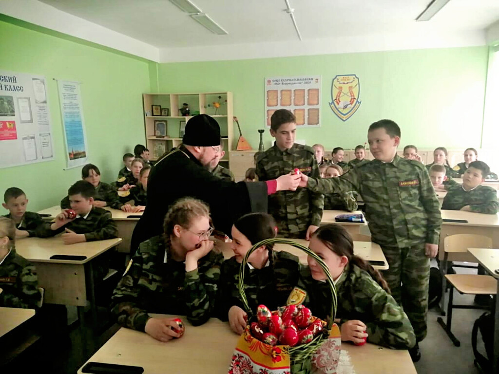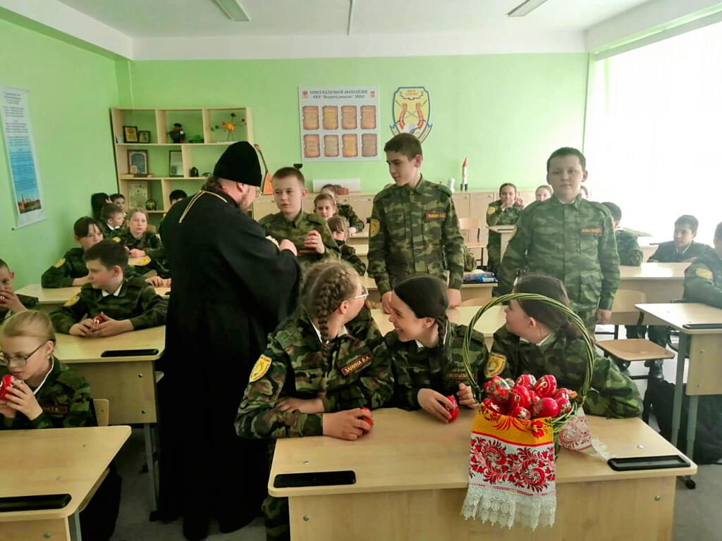В Краснокаменске священник поздравил кадетов казачьего класса с Пасхой