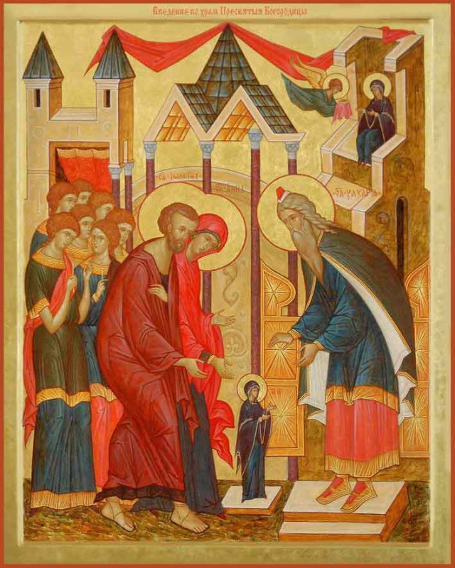 Введение во храм Пресвятой Богородицы — праздник, который пришел к нам из Церковного Предания. В это день христиане вспоминают, как святые Иаоким и Анна привели трехлетнюю Деву Марию в Иерусалимский Храм. Так родители Богородицы исполнили свой обет — обещание посвятить долгожданную дочь Богу. Мы расскажем об истории, особенностях и традициях праздника. Что такое Введение во храм Пресвятой Богородицы Введение во храм Пресвятой Владычицы нашей Богородицы и Приснодевы Марии — так полностью называется праздник, который Русская Православная Церковь отмечает 4 декабря (по новому стилю). Это второй двунадесятый богородичный праздник церковного года. Двунадесятыми называются праздники, которые догматически тесно связаны с событиями земной жизни Господа Иисуса Христа и Богородицы и делятся на господские (посвященные Господу Иисусу Христу) и богородичные (посвященные Божией Матери). В этот день православные христиане вспоминают, как святые праведные Иоаким и Анна привели свою трехлетнюю дочь — Пресвятую Богородицу — в Иерусалимский Храм. Сделали они это, чтобы исполнить свой обет перед Господом — посвятить дочь служению Ему. С этого дня Дева Мария жила при Иерусалимском Храме — до того самого момента, как была обручена праведному Иосифу. Мы не найдем упоминания о событиях этого праздника в канонических Евангелиях, но о нем нам говорит Церковное Предание (которое почитается наравне со Священным Писанием). А именно — «История Иакова о рождении Марии», или «Протоевангелие Иакова» (II век), и «Евангелие Псевдо-Матфея» (латинская версия детства Девы Марии и Иисуса, сложившаяся к IX—X векам, но основанная на более ранних «евангелиях детства»). События Введения во храм Пресвятой Богородицы Когда Деве Марии исполнилось три года, ее праведные родители Иоаким и Анна поняли, что пришло время исполнить обет, который они дали Богу. А именно — посвятить дочь служению Ему. Они привели Марию к стенам Иерусалимского Храма. Как гласит Священное Предание, Богородица легко поднялась по крутым ступенькам, несмотря на то, что была совсем малышкой. Наверху ее уже ждал первосвященник, чтобы благословить. Согласно некоторым источникам, это был святой Захария, будущий отец пророка Иоанна Предтечи. Захарии было откровение от Господа, и он ввел Марию в Святая Святых — место, куда разрешалось входить лишь первосвященнику, да и то всего один раз в год. С этого необычного для современников момента началась долгая, славная и трудная дорога Божией Матери. Шли годы, Богородица жила и служила при Храме. Проводила свои дни в молитве, изучала Священное Писание — вплоть до момента, когда была обручена праведному Иосифу. Когда празднуется Введение во храм Пресвятой Богородицы Введение во храм Пресвятой Богородицы празднуется 4 декабря по новому стилю (21 ноября по старому стилю). Это непереходящий праздник, то есть дата его неизменна. История празднования Введения во храм Пресвятой Богородицы Как говорит Церковное Предание, праздник Введения во храм Пресвятой Богородицы был известен уже в первые века христианства. Равноапостольная императрица Елена (годы жизни: 250-330) построила храм в честь Введения во храм Пресвятой Богородицы. А в IV веке о празднике писал святитель Григорий Нисский. Широкое распространение праздник Введения во храм Пресвятой Богородицы полу