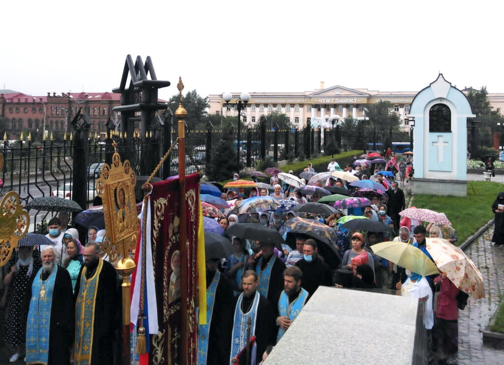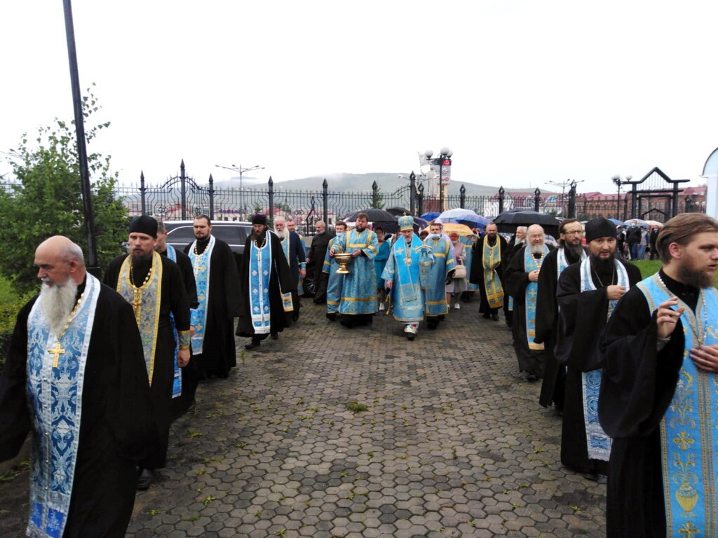 21 июля 2021 года, в праздник явления иконы Пресвятой Богородицы во граде Казани, Высокопреосвященнейший Димитрий, митрополит Читинский и Петровск-Забайкальский, временно управляющий Нерчинской епархией совершил Божественную литургию в соборе Казанской иконы Божией Матери в г. Чите. Его Высокопреосвященству сослужили клирики Читинской и Нерчинской епархий. Диаконский чин: иеродиакон Иннокентий (Федоров), диакон Михаил Воробьев, диакон Андрей Окладников. По окончании Литургии был совершен крестный ход вокруг храма. Глава митрополии поздравил присутствующих священнослужителей и прихожан с престольным праздником пожелав всем заступничества Пресвятой Богородицы. Фотографии официального сайта Читинской епархии ©Нерчинская епархия