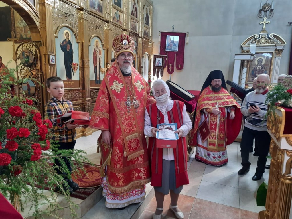 16 мая 2021 года, в Неделю 3-ю по Пасхе, святых жен-мироносиц, митрополит Читинский и Петровск-Забайкальский Димитрий, временно управляющий Нерчинской епархией, возглавил Божественную литургию в храме Спаса Нерукотворного Образа в г. Краснокаменск. Его Высокопреосвященству сослужили секретарь Нерчинской епархии игумен Симеон (Зимняков), секретарь Читинской епархии иеромонах Иона (Ларин), и клирик Спасского храма в Краснокаменске иеромонах Макарий (Долматов). Диаконский чин иеродиакон Иннокентий (Фёдоров). На сугубой ектении глава Забайкальской митрополии вознес молитву во время распространения вредоносного поветрия чтомую. Перед причастием иеромонах Макарий (Долматов) зачитал Пасхальное послание Высокопреосвященнейшего Димитрия, митрополита Читинского и Петровск-Забайкальского, главы Забайкальской митрополии. По окончании Литургии Владыка Димитрий наградил благодарственными письмами директора и коллектив ДК «Даурия», директора ПАО ППГХО Татьяну Викторовну Батыреву за реализацию совместных с приходом просветительских и благотворительных проектов. Также за многолетний добросовестный труд на благо прихода были награждены работники Спасского храма Евдокия Никифоровна Пляскина, Любовь Захаровна Вологдина, Лидия Ивановна Аксаментова, регент церковного хора Ирина Владимировна Сумарокова и педагог Воскресной школы Галина Андреевна Постоенко. Владыка также обратился к молящимся с архипастырским словом, поблагодарил всех за совместную молитву и вручил красные гвоздики в память жен-мироносиц и за заботу о благолепии храма всем присутствующим в храме женщинам. ©Нерчинская епархия