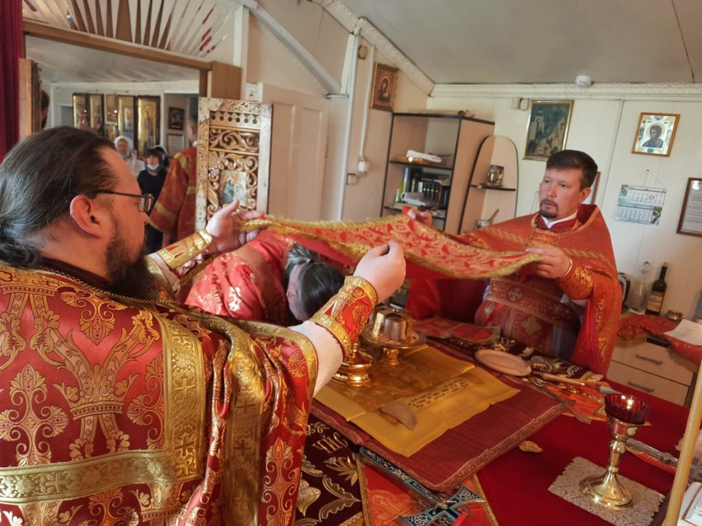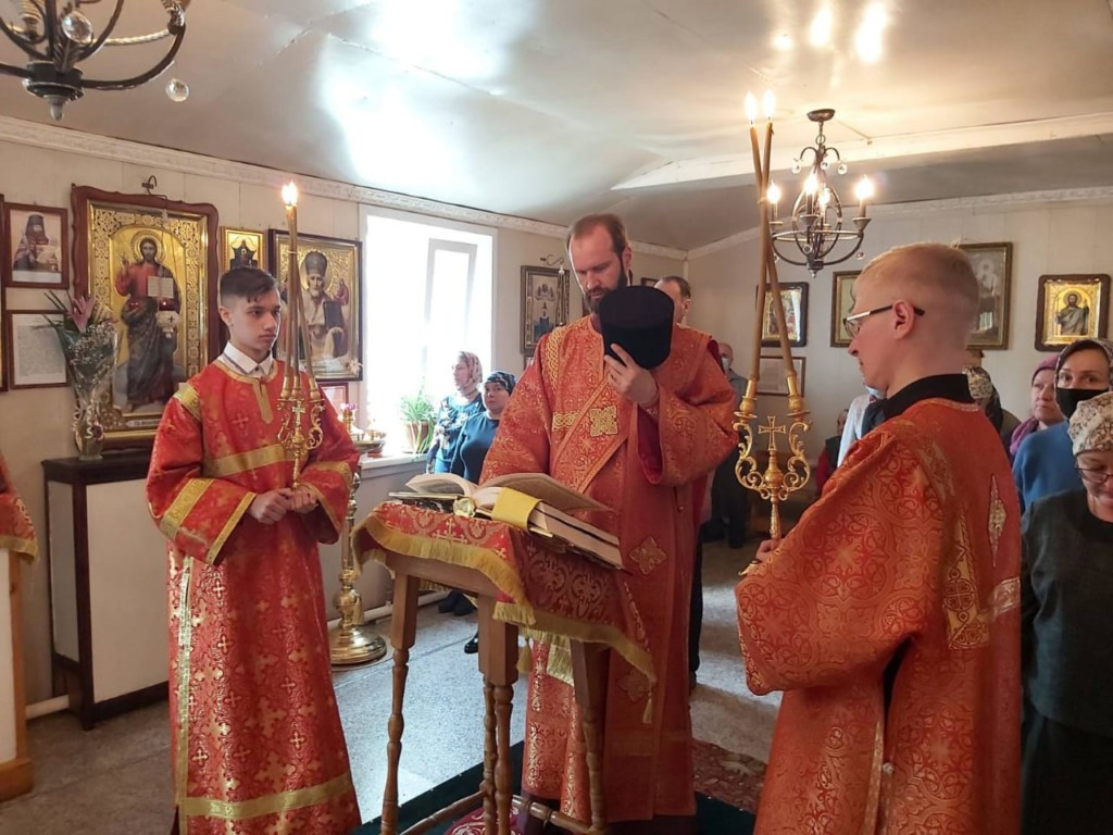 14 мая 2021 года, в пятницу 2-й седмицы по Пасхе, митрополит Читинский и Петровск-Забайкальский Димитрий, временно управляющий Нерчинской епархией, совершил Божественную литургию в храме Вознесения Господня в пгт. Забайкальск. Его Высокопреосвященству сослужили секретарь Нерчинской епархии игумен Симеон (Зимняков) и секретарь Читинской епархии иеромонах Иона (Ларин). Диаконский чин иеродиакон Иннокентий (Фёдоров). На сугубой ектении глава Забайкальской митрополии вознес молитву во время распространения вредоносного поветрия чтомую. Перед причастием иеромонах Иона (Ларин) зачитал Пасхальное послание Высокопреосвященнейшего Димитрия, митрополита Читинского и Петровск-Забайкальского, главы Забайкальской митрополии. По окончании Литургии Владыка Димитрий обратился к молящимся с архипастырским словом, поблагодарил всех присутствующих за совместную молитву. Дети Воскресной школы поздравили митрополита Димитрия с Пасхой и преподнесли ему Пасхальные подарки. Также Владыка пообщался с прихожанами храма и преподал архипастырское благословение. ©Нерчинская епархия