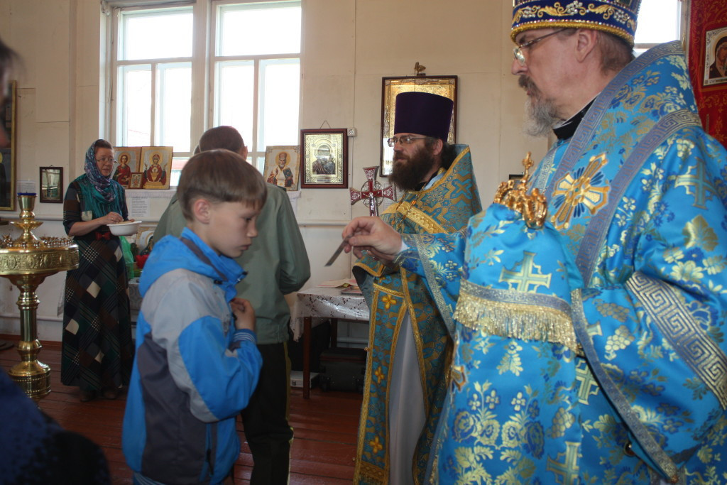 3 июня Церковь празднует память одного из самых почитаемых и любимых образов на Руси — Владимирской иконы Пресвятой Богородицы. В этот день епископ Нерчинский и Краснокаменский Димитрий возглавил Божественную Литургию селе Кокуй Сретенского района, где храм Владимирской иконы Божией Матери отметил престольный праздник. Его Преосвященству сослужили священники Нерчинского благочиния: протоиерей Андрей Кисов — благочинный Нерчинского округа, председатель епархиального Отдела религиозного образования и катехизации, настоятель храма Рождества Пресвятой Богородицы; протоиерей Александр Тылькевич — руководитель Миссионерского отдела и Отдела социального служения и церковной благотворительности, настоятель храма святых апостолов Петра Павла г. Шилки; священник Валерий Шемелин — руководитель епархиального Отдела тюремного служения, настоятель храма прп. Амвросия Оптинского пгт. Первомайский; священник Владислав Петров, клирик Воскресенского кафедрального собора г. Нерчинска. Диаконский чин — диакон Андрей Демидов. Соборная служба в храме села Кокуй была совершена впервые со времени его постройки. Храм пока не освящен, поэтому Преосвященнейший Димитрий поручил прихожанам готовится к этому историческому событию. Во время крестного хода, который был совершен по окончании Божественной Литургии, молились о благополучии села и его жителей, о милости Божией для добрых дел. Епископ Димитрий, поздравляя настоятеля — протоиерея Андрея Кисова — и прихожан, пожелал хранить любовь и развивать приходскую жизнь вне богослужения, больше общаться и за стенами храма, чтобы таким образом росла община и как можно больше людей приходило ко Христу. В память о богослужении правящий архиерей подарил всем иконы Пресвятой Богородицы. После состоялась праздничная трапеза, где многолетие пропели всем настоятелям храма: иеромонаху Николаю (Щербакову), священнику Димитрию Каширину, протоиерею Игорю Хованскому, протоиерею Андрею Кисову. Большинство из них теперь продолжают нести пастырское служение на приходах Читинской епархии, но в Кокуе помнят и молятся о священниках, которые вложили душу развитие прихода. Пресс-служба Нерчинской и Краснокаменской епархии.