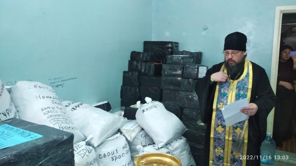 16 ноября 2022 года секретарь Нерчинской епархии игумен Симеон (Зимняков) совершил молебен о здравии воинов краснокаменцев и окропил святой водой посылки воинам участникам СВО. Общественная организация «Своих не бросаем» г. Краснокаменска собрала, упаковала и подготовила к отправке тёплые вещи и продукты. В сборе медикаментов, санитарно-гигиенических принадлежностей, необходимых в военно-полевых условиях, а также теплых вещей и продуктов питания приняли участие жители города и сёл Краснокаменского района. Очень много вещей создано заботливыми руками краснокаменских рукодельниц, в том числе — прихожанок Спасского храма (носки, шарфы, перчатки, головные уборы). В посылки вложены рисунки и письма краснокаменских детей. Также продолжают работать пункты приема вещей «Коробки доброты» в магазинах города Краснокаменск и Краснокаменского района. ©Нерчинская епархия