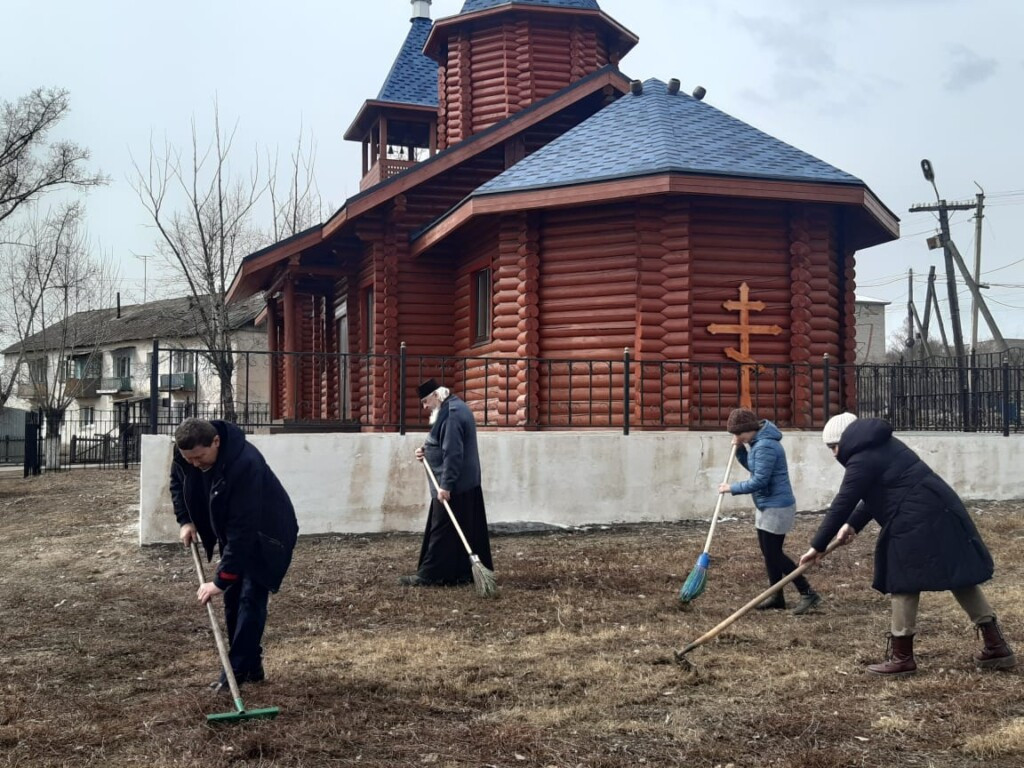 16 апреля 2022 года к празднику Пасхи прихожане вместе с настоятелем храма святого апостола и евангелиста Луки в г. Балей иереем Владиславом Петровым провели уборку прихрамовой территории. Подобные мероприятия проходят возле храма традиционно в преддверии праздников. Многие прихожане с радостью откликаются на просьбы священнослужителя и приходят потрудиться во славу Божию. Настоятель и Приходской Совет выражает благодарность всем, кто нашел время и возможность помочь в уборке территории храма перед Светлым Христовым Воскресением. В этот же день, накануне праздника Входа Господня в Иерусалим, иерей Владислав Петров совершил в храме всенощное бдение и освятил вербы. ©Нерчинская епархия