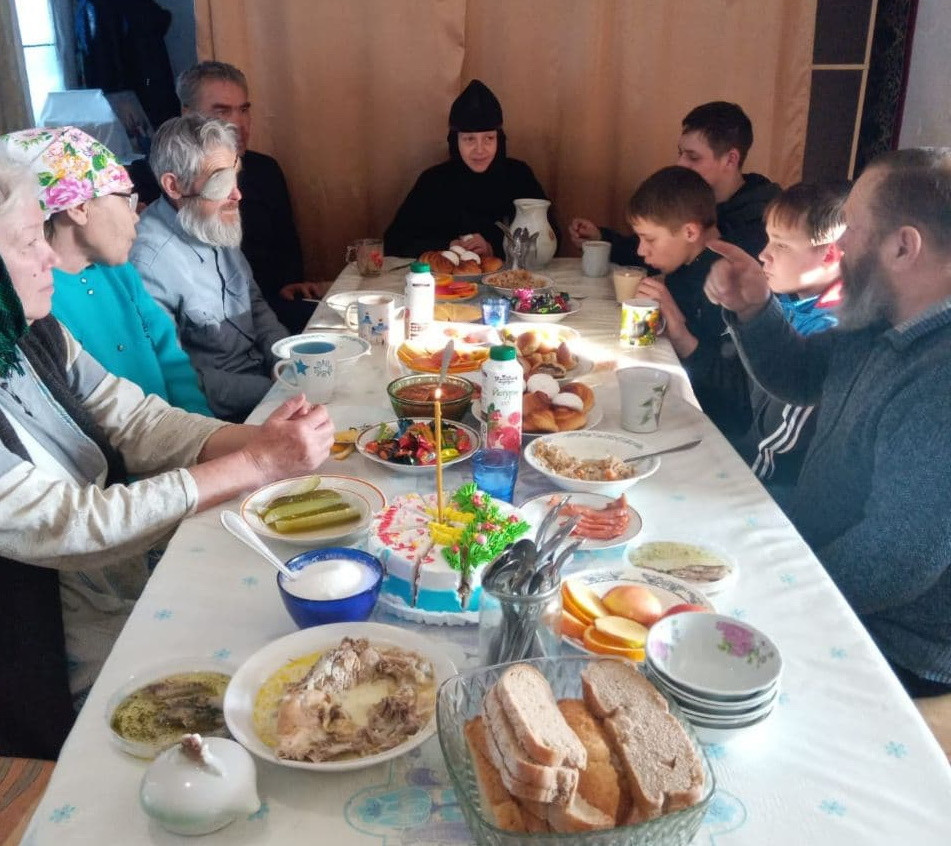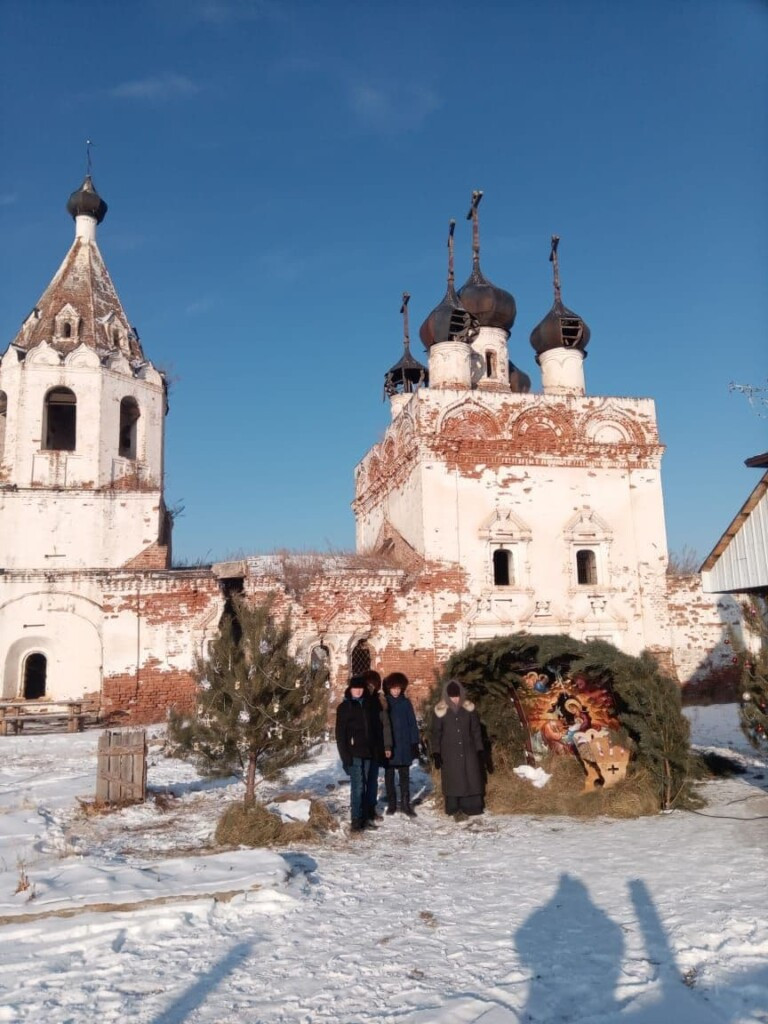 На праздник Рождества Господа и Спаса нашего Иисуса Христа храм Успения Пресвятой Богородицы в с. Калинино (до 1923 года носило название Монастырское) Нерчинского района посетили гости из г. Нерчинска и ст. Приисковой. После совместной молитвы с монахиней Павлой (Лапердиной) гости сфотографировались у Рождественского вертепа расположенного на территории храма. Также матушка Павла пригласила всех на трапезу, за которой обсуждали ведение сельского хозяйства, пчеловодство, о милостях Божиих, кто как пришёл к Богу и конечно же о празднике Рождества Христова. Согласно Сибирской “Киприановской” летописи, первый в Забайкалье Нерчинский Успенский мужской монастырь был основан в 1664 году, через десять лет после постройки Нерчинского острога. Тобольский архиепископ Симеон благословил строительство самого дальнего русского монастыря. В 1706 году здесь начали возводить новый большой каменный храм, каменные стены и каменные кельи. Первый на востоке от Байкала каменный храм освятили в 1712 году, антиминс подписал митрополит Тобольский и всея Сибири Иоанн Максимович. Тогда же к Успенскому монастырю были приписаны пашенные крестьяне и земли в селениях Монастырское, Шивки, Кирочи и Каменское. ©Нерчинская епархия
