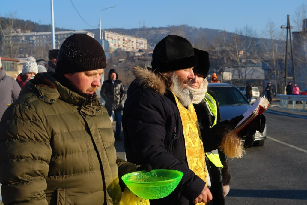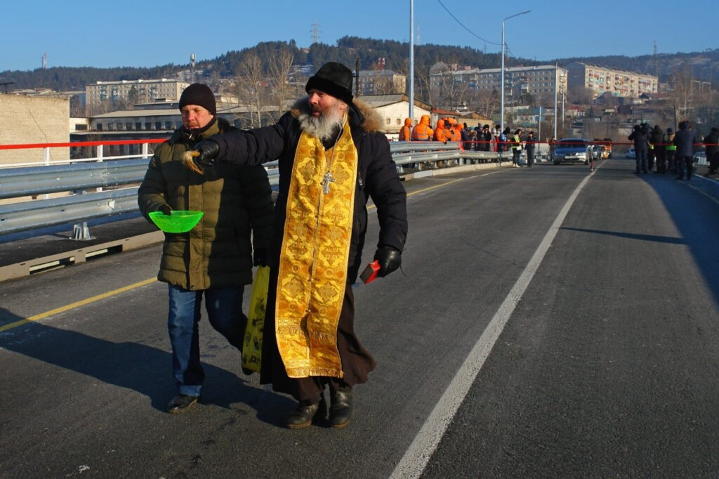 24 декабря 2021 года иерей Валерий Шемелин освятил путепровод над Транссибирской железнодорожной магистралью в поселке Дарасун Карымского района. Движение по мосту запустили после реконструкции старого путепровода, построенного в конце 40-х годов прошлого века. Мост соединяет приходы Карымского района и приходы южных районов Нерчинской епархии. Ранее необходимо было проехать дополнительно 25 километров в объезд. Фотографии Максим Стефанович ©Нерчинская епархия