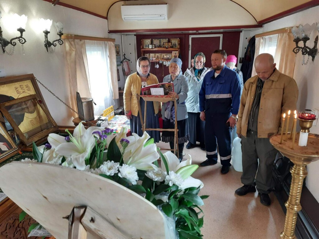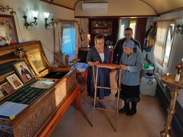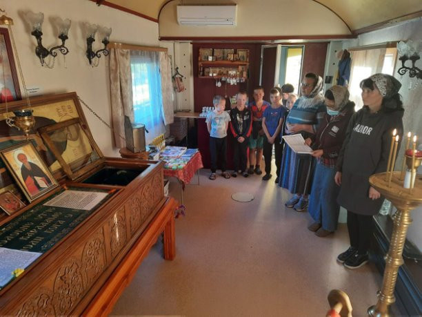 С 19 по 24 сентября 2021 года храм-вагон святителя Николая Чудотворца Забайкальской митрополии находился на станции Нерчинск. В эти дни верующие нерчане смогли поклониться мощам преподобного Варлаама Чикойского, которые находятся в храме-вагоне по благословению митрополита Читинского и Петровск-Забайкальского Димитрия, временно управляющего Нерчинской епархией. По прибытию на станцию Нерчинск 19 сентября в храме-вагоне верующие читали акафист святому преподобному Варлааму Чикойскому, Забайкальскому Чудотворцу. Накануне праздника Рождества Пресвятой Богородицы совершалось чтение канона празднику, а в сам день праздника 21 сентября была отслужена обедница. Далее с 25 по 29 сентября вагон-церковь будет находится в г. Сретенск. ©Нерчинская епархия