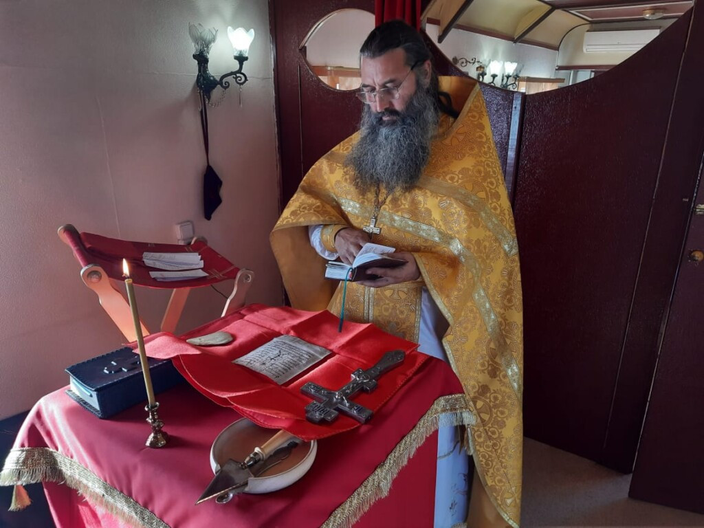 16 сентября 2021 года, протоиерей Александр Тылькевич, совершил Божественную литургию в вагоне-церкви святителя Николая Чудотворца, прибывшего на станцию Шилка. Накануне в храме-вагоне было совершено вечернее богослужение. По благословению митрополита Читинского и Петровск -Забайкальского Димитрия, временно управляющего Нерчинской епархией в храме-вагоне находится рака с мощами преподобного Варлаама Чикойского. Далее, 17 сентября храм-вагон будет находится на станции Холбон, 18 сентября на станции Приисковая, с 19 по 24 сентября в Нерчинске. ©Нерчинская епархия