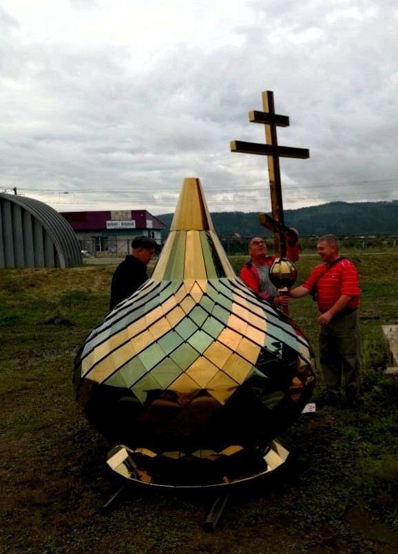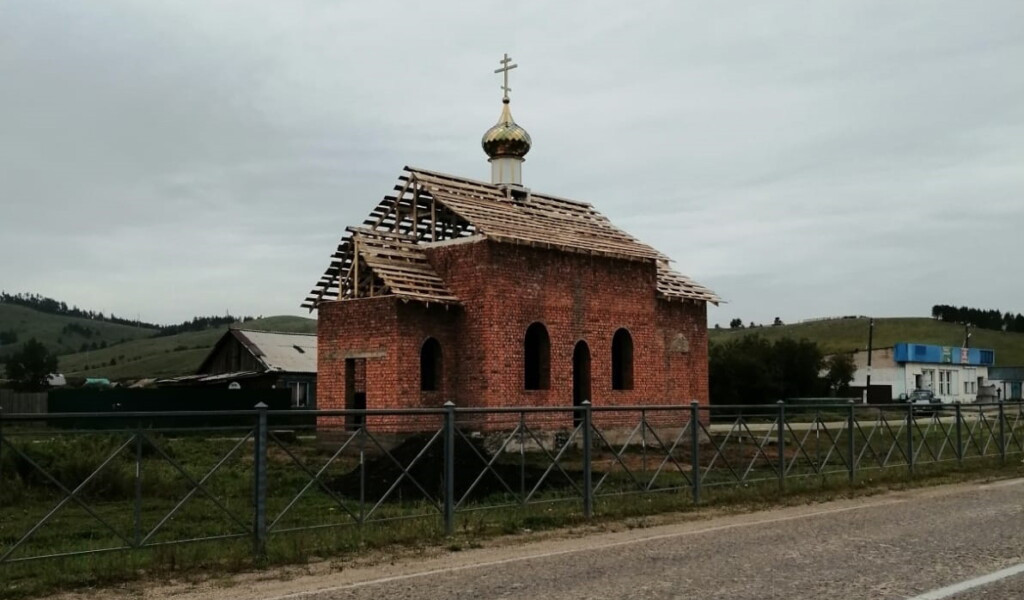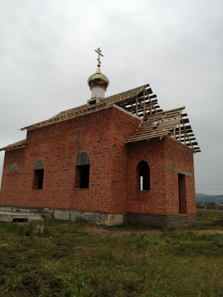На строящийся храм Трех Святителей в Кадахте подняли купол и крест