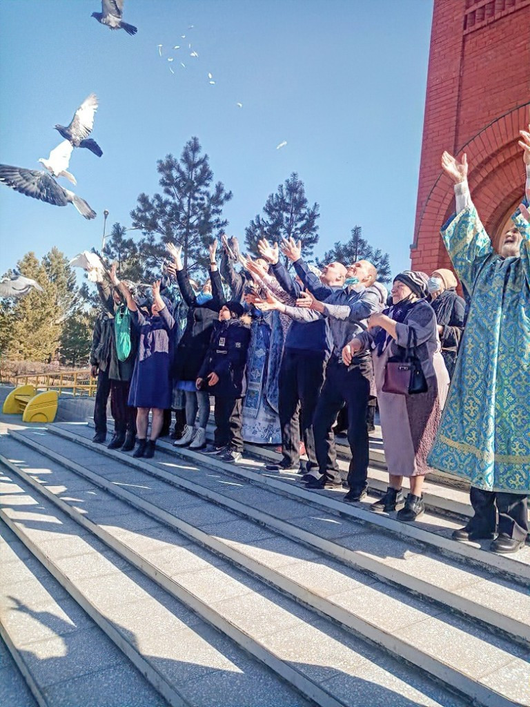 В Краснокаменском благочинии на Благовещение выпустили голубей