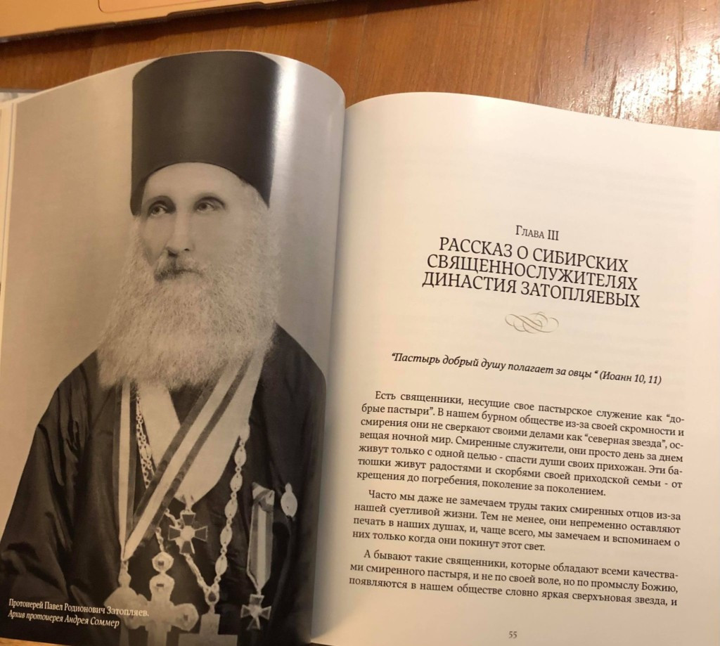4 марта 2021 года в резиденции Архиерейского Синода Русской Православной Церкви Заграницей состоялось презентации новой книги «Затопляевы — Наши предки за Байкалом». Книга протоиерея Андрея Соммер, ключаря Знаменского Синодального собора в Нью-Йорке – о его предках, династии священно- и церковнослужителей Затопляевых, служивших Святой Церкви на протяжении двух столетий. Поиски информации о своем пра-пра-прадеде — протоиерее Павле Родионовиче Затопляеве, выдающемся пастыре Забайкалья конца XIX – начала XX века, привели о. Андрея Соммер в архивы Иркутской области. За 50 лет священнослужения о. Павел Затопляев прошел все ступени: был настоятелем главного собора города Нерчинска, учителем и смотрителем духовного училища, директором благотворительных фондов, любящим отцом четверых своих детей и множества сирот. Издание также знакомит читателя с историей Православия в Забайкалье, святынями, святыми и праведниками Забайкальского края. В книге представлены уникальные фотографии и документы из российских и семейных архивов. Заказы пока принимаются только в США. Весь доход от продажи книги пойдет на реализацию молодежных программ Молодежной ассоциации князя Владимира. ©Нерчинская епархия