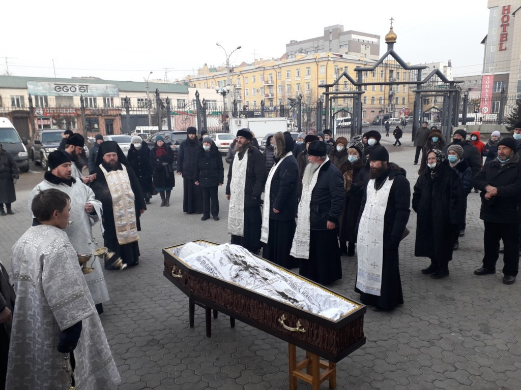 21 декабря 2020 года в Казанском кафедральном соборе г. Читы совершено отпевание новопреставленного протоиерея Алексия Рябова, клирика Нерчинской епархии. Чин отпевания возглавил секретарь Нерчинского епархиального управления игумен Симеон (Зимняков). Его Высокопреподобию сослужили священнослужители Нерчинской и Читинской епархий. За богослужением молились председатель Миссионерского отдела Нерчинской епархии протоиерей Александр Тылькевич, благочинный II-го Читинского городского округа иерей Антоний Горбунов, родные и близкие новопреставленного священнослужителя, прихожане храмов Читинской и Нерчинской епархий. В завершении богослужения игумен Симеон обратился к духовенству, родным новопреставленного и прихожанам. Священник выразил соболезнования и отметил, что среди нашей постоянной суеты и бесконечных дел, среди житейских забот весть о смерти всегда приходит внезапно, тем более весть о кончине близкого человека, который только «вчерашний день беседовал с вами». Любая смерть ненормальна, и с нею не хочет и не желает смириться наше человеческое сердце. Но смерть — это конец и всем земным трудам, заботам, тревогам и скорбям. Смерть — это конец и многочисленным, нередко очень тяжёлым болезням и страданиям. «Смерть — мужу покой», — сказано в книге Иова. И мы знаем, что «у Бога нет мёртвых, но все живы». Только мы сегодня по одну сторону бытия — а наш дорогой отец Алексий, уже по другую. Сегодня очень важно, чтобы мы вместе усердно молились о упокоении батюшки и помнили, что любовь и наша молитва — это тот дар, который мы приносим ближнему. После отпевания гроб с телом почившего пронесли крестным ходом вокруг храма. Протоиерей Алексий будет покоиться на Центральном кладбище г. Читы. По материалам Информационно-издательского отдела Читинской епархии