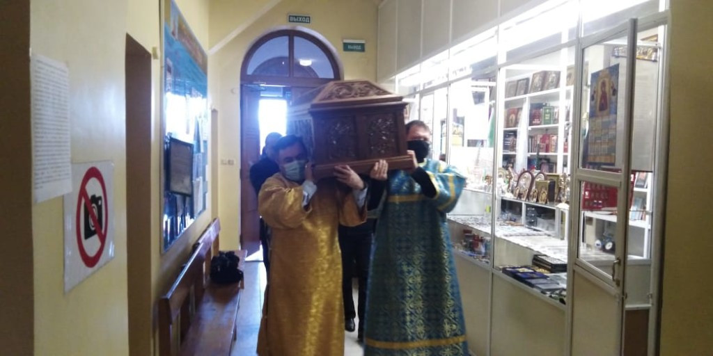 14 октября 2020 года, в праздник Покрова Пресвятой Владычицы нашей Богородицы и Приснодевы Марии храм-вагон Забайкальской митрополии прибыл в г.Краснокаменск. В 7:30 утра по благословению митрополита Читинского и Петровск -Забайкальского Димитрия, временно управляющего Нерчинской епархией, рака с мощами преподобного Варлаама Чикойского была доставлена в храм Спаса Нерукотворного Образа. По окончании Божественной литургии игумен Симеон (Зимняков) совершил молебен ко Пресвятой Богородице и ко святому преподобному Варлааму Чикойскому, Забайкальскому Чудотворцу. Рака с мощами будет находится в Спасском храме г. Краснокаменска до 10 октября. ©Нерчинская епархия