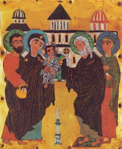 Есть христианские праздники, о которых знают буквально все. И могут в двух словах описать, что же, собственно, отмечают верующие. Рождество — Христос родился. Пасха — Христос воскрес. А что такое Сретение Господне? Что вообще значит это непривычное современному человеку слово — «сретение»? Журнал «Фома» предлагает вам познакомиться с хронологией событий Сретения и посмотреть, какой след этот день новозаветной истории оставил в мировой культуре. Что значит слово «Сретение»? Самый частый вопрос, который можно услышать по поводу Сретения: «Так, хорошо, сегодня Сретение. А что это такое?» Сретение Господне — один из Двунадесятых праздников христианской Церкви, то есть главных праздников церковного года. Это непереходящий праздник, в Русской Правславной Церкви он отмечается 15 февраля. В переводе с церковнославянского «сърѣтение» — «встреча». День Сретения — точка во времени, где встретились Ветхий и Новый Заветы. Древний мир и христианство. Произошло это благодаря человеку, которому в Евангелии отведено совершенно особенное место. Но обо всем по порядку. Сретение. Цикл мозаик с шестью сценами из жизни Марии в церкви Санта Мария в Трастевере в Риме, Пьетро Каваллини Очистительная жертва от Пречистой Девы 15 февраля мы вспоминаем события, описанные в Евангелии от Луки. Сретение произошло через 40 дней после Рождества Христова. У иудеев того времени было две традиции, связанных с рождением в семье ребенка. Во-первых, женщина после родов не могла появляться в Иерусалимском Храме сорок дней (а если родилась девочка — то и все восемьдесят). Как только срок истекал, мать должна была принести в Храм очистительную жертву. В нее входила жертва всесожжения — годовалый ягненок, и жертва во оставление грехов — голубка. Если семья была бедной, вместо ягненка тоже приносили голубку, получалось «две горлицы или два птенца голубиных». Во-вторых, если в семье первенцем был мальчик, родители на сороковой день приходили с новорожденным в Храм — для обряда посвящения Богу. Это была не просто традиция, а закон Моисеев: его иудеи установили в память исхода евреев из Египта — освобождения от четырехвекового рабства. И вот, Мария и Иосиф прибыли из Вифлеема в столицу Израиля Иерусалим. С сорокадневным Богомладенцем на руках они ступили на порог Храма. Семья жила небогато, поэтому очистительной жертвой Богородицы стали два голубка. Пречистая Дева решила принести жертву из смирения и уважения перед иудейским законом, несмотря на то, что Иисус появился на свет в результате непорочного зачатия. Встреча в Иерусалимском Храме После совершения обряда Святое Семейство уже направлялось к выходу из Храма, но тут к ним подошел древний старик, пожалуй, самый старый человек в Иерусалиме. Его звали Симеон. В переводе с древнееврейского «šim’on» значит «слышание». Праведник взял Младенца на руки и радостно воскликнул: «Ныне отпускаешь раба Твоего, Владыко, по слову Твоему, с миром, ибо видели очи мои спасение Твое, которое Ты уготовал пред лицем всех народов, свет к просвещению язычников и славу народа Твоего Израиля» (Лк 2:29-32). По преданию, на момент встречи со Христом Симеону было больше 300 лет. Он был уважаемым человеком, одним из семидесяти двух ученых, которым поручили перевести Священное Писание с еврейского на греческий. Перевод Септуагинты был сделан по прось