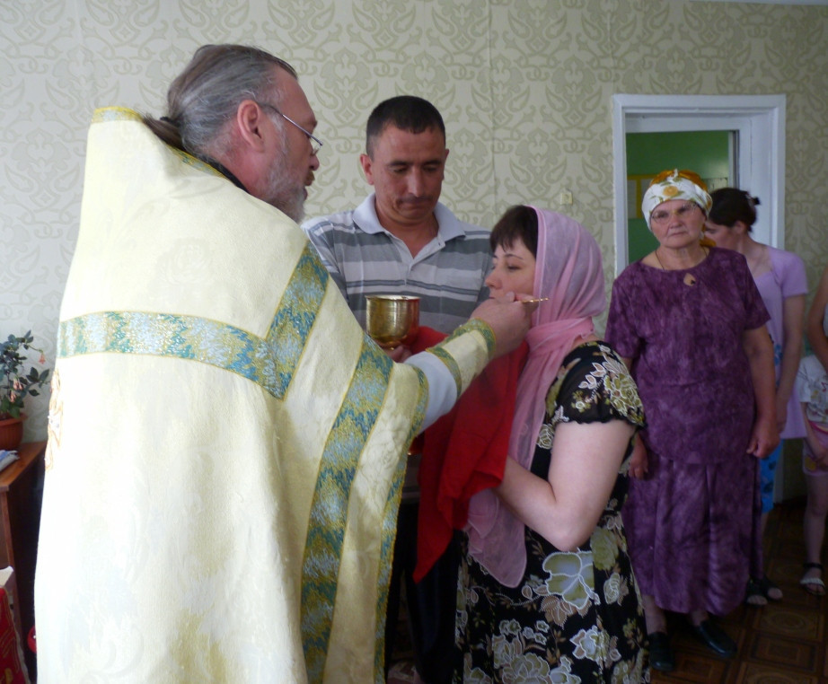 В середине июня помощник руководителя Миссионерского отдела Нерчинской епархии, настоятель Прихода храма равноап. князя Владимира с. Газимурский Завод священник Алексий Рябов вновь побывал в селе Чиндаготай. На попечении батюшки сейчас более 20 новоначальных христиан, которые недавно приняли Таинство Крещения. Все они готовились к главному Таинству Православной Церкви – Принятию Святых Тела и Крови Христовой. В местном молельном доме священник совершил Божественную Литургию, после чего все исповедовались и причастились Божественных Таин. По окончании богослужения иерей Алексий обратился к молящимся со словами проповеди на тему Евангельского чтения — о грехе осуждения и начале духовной жизни. В этот же день Таинство Крещения приняли еще четыре жителя села. Были освящены дома прихожан. Пресс-служба Прихода храма равноап. князя Владимира с. Газимурский Завод.