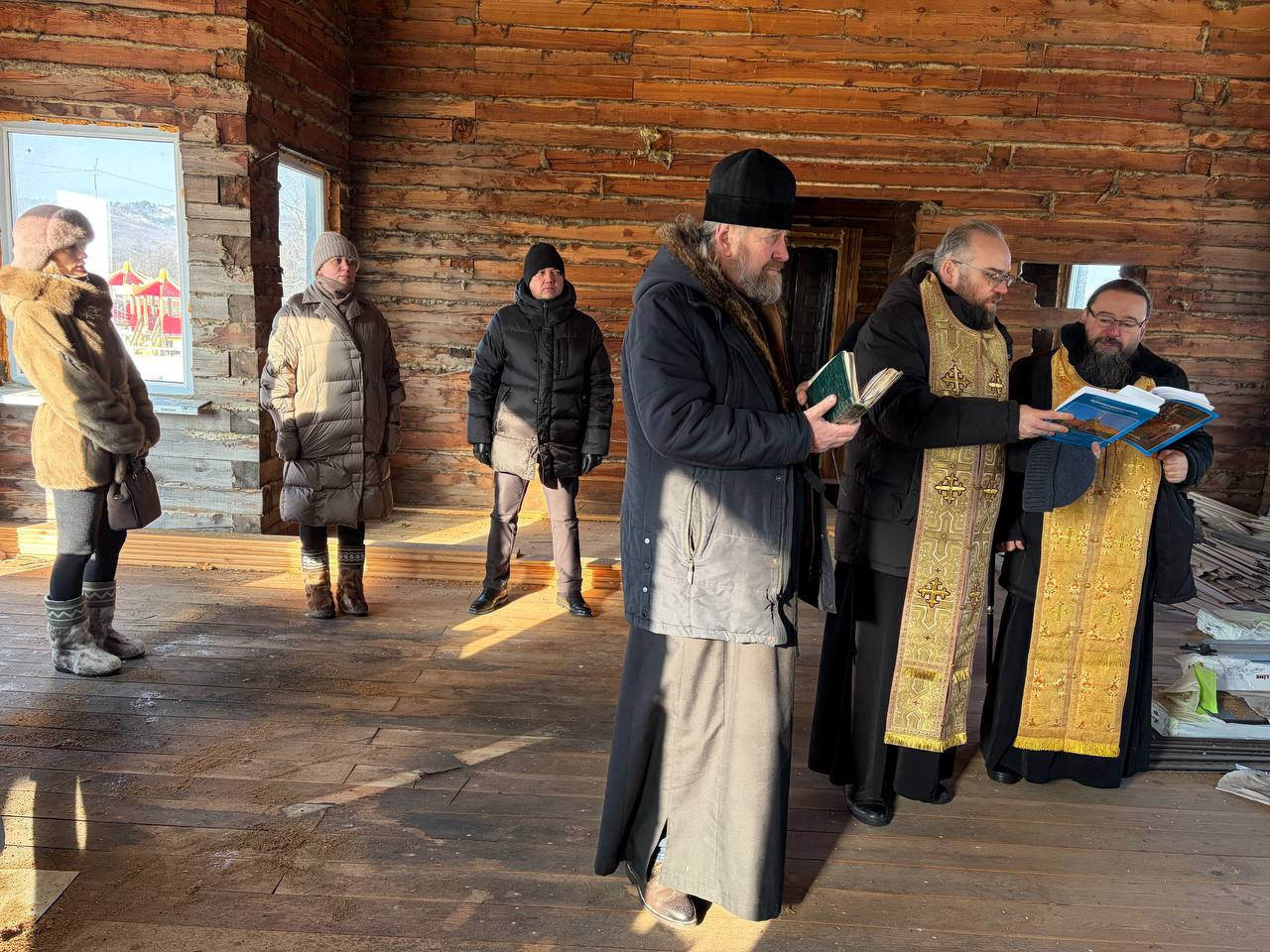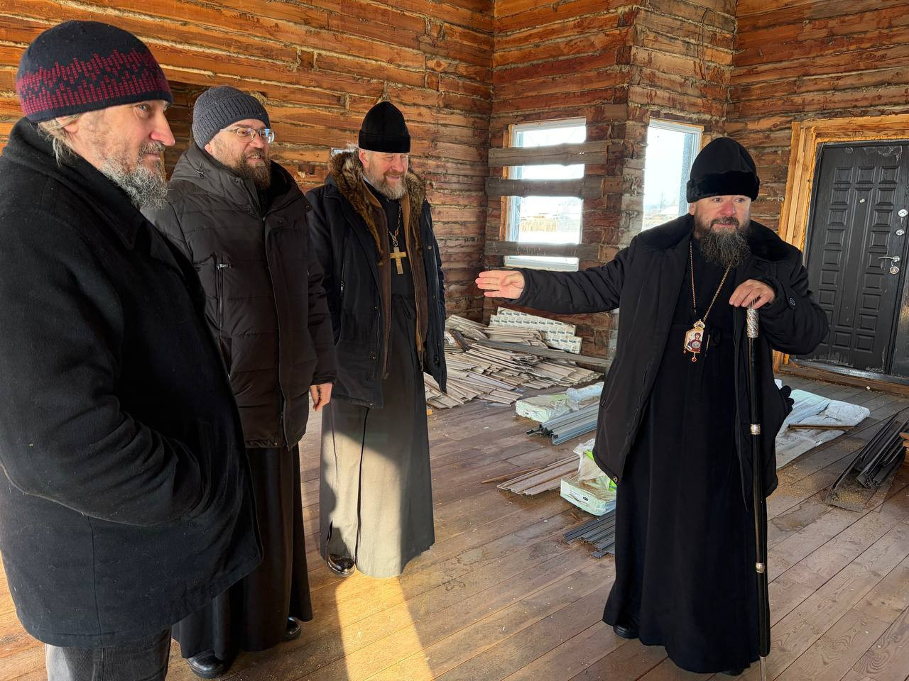 10 февраля 2026 года, епископ Нерчинский и Краснокаменский Макарий, в ходе архипастырской поездки по Могочинскому району, посетил строящийся храм великомученика Георгия Победоносца в с. Сбега.