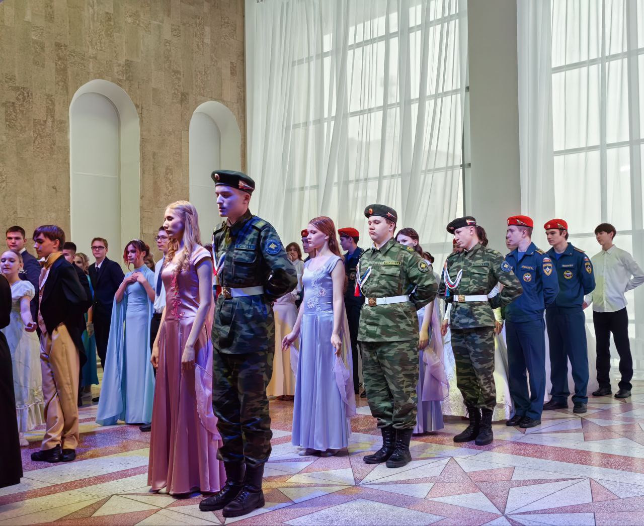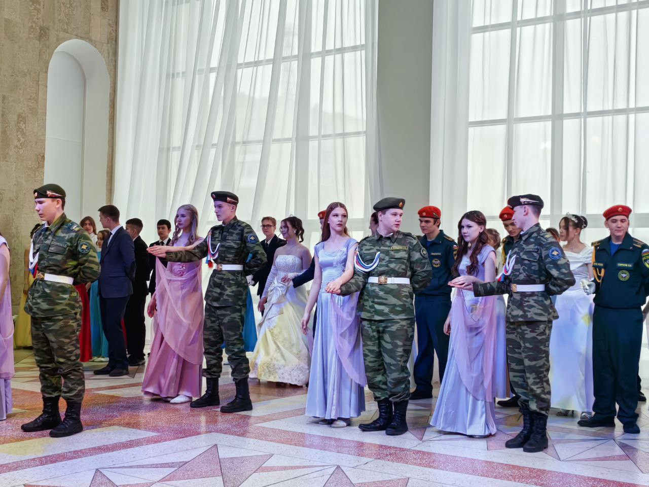 В этом году на балу собрались учащиеся общеобразовательных школ города, кадеты ВПК «Зарница», кадетские классы МАОУ «СОШ 1», а также кадеты пожарно-спасательного класса МЧС МАОУ «СОШ 6». Студенты Краснокаменского горно-промышленного техникума, учащиеся детской школы искусств и воскресной школы соборного храма Спаса Нерукотворного Образа также внесли свой вклад в это замечательное событие.