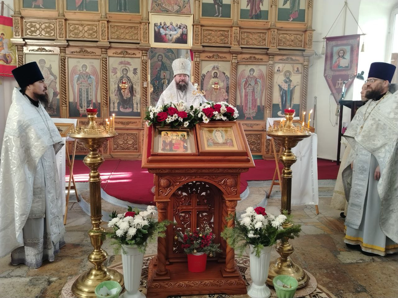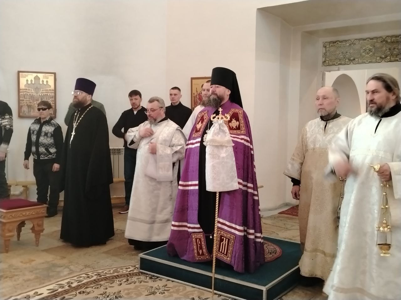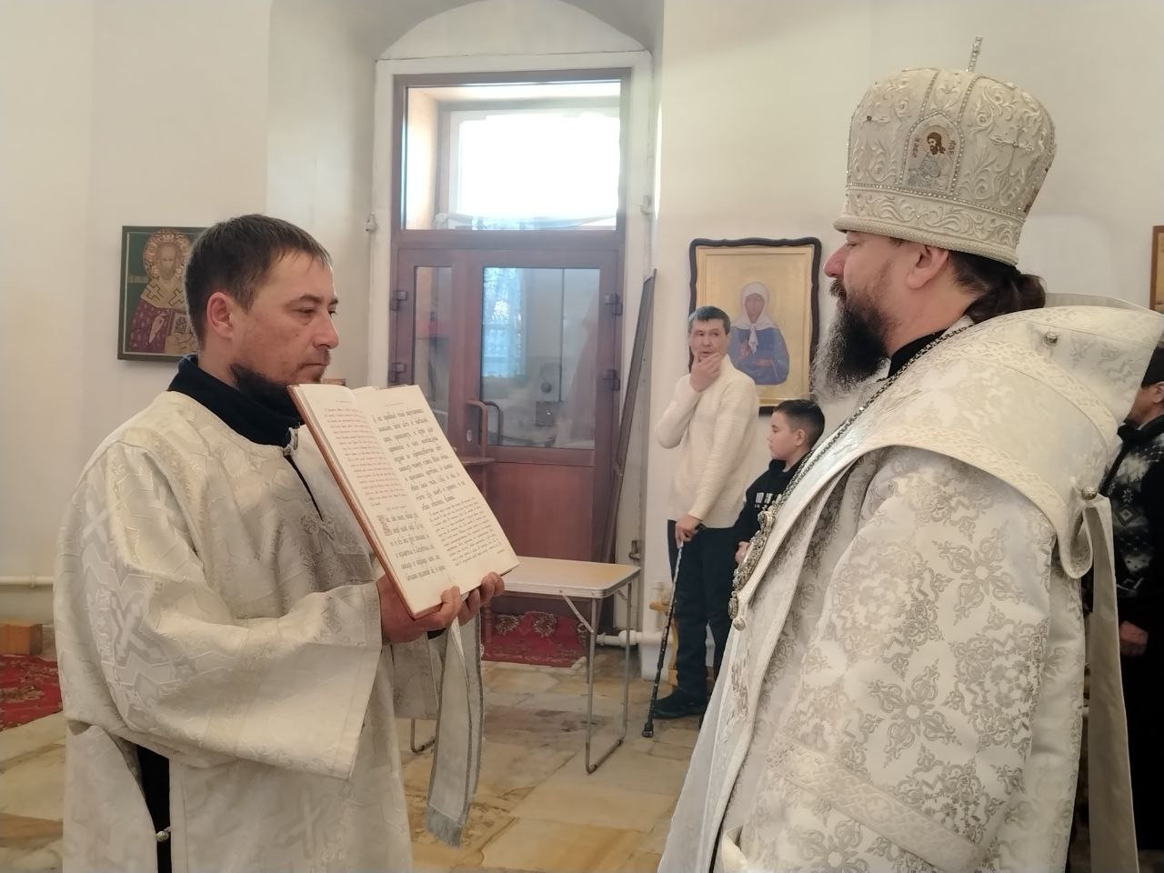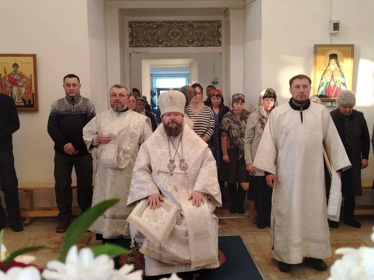Его Преосвященству сослужили: настоятель храма Рождества Пресвятой Богородицы пгт. Чернышевска протоиерей Андрей Кисов; клирик Воскресенского кафедрального собора г. Нерчинска иерей Роман Пичуев.