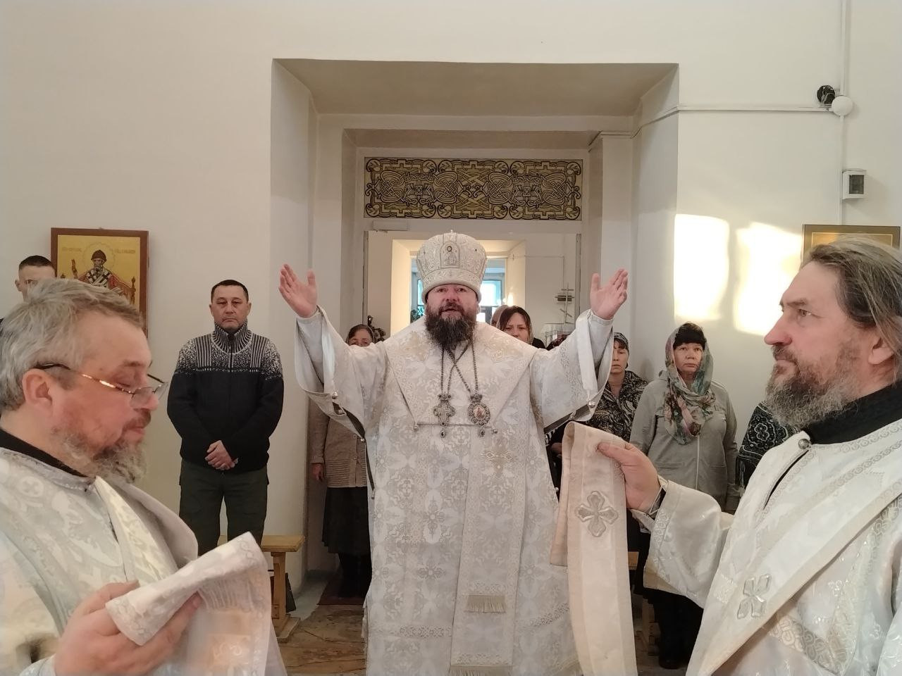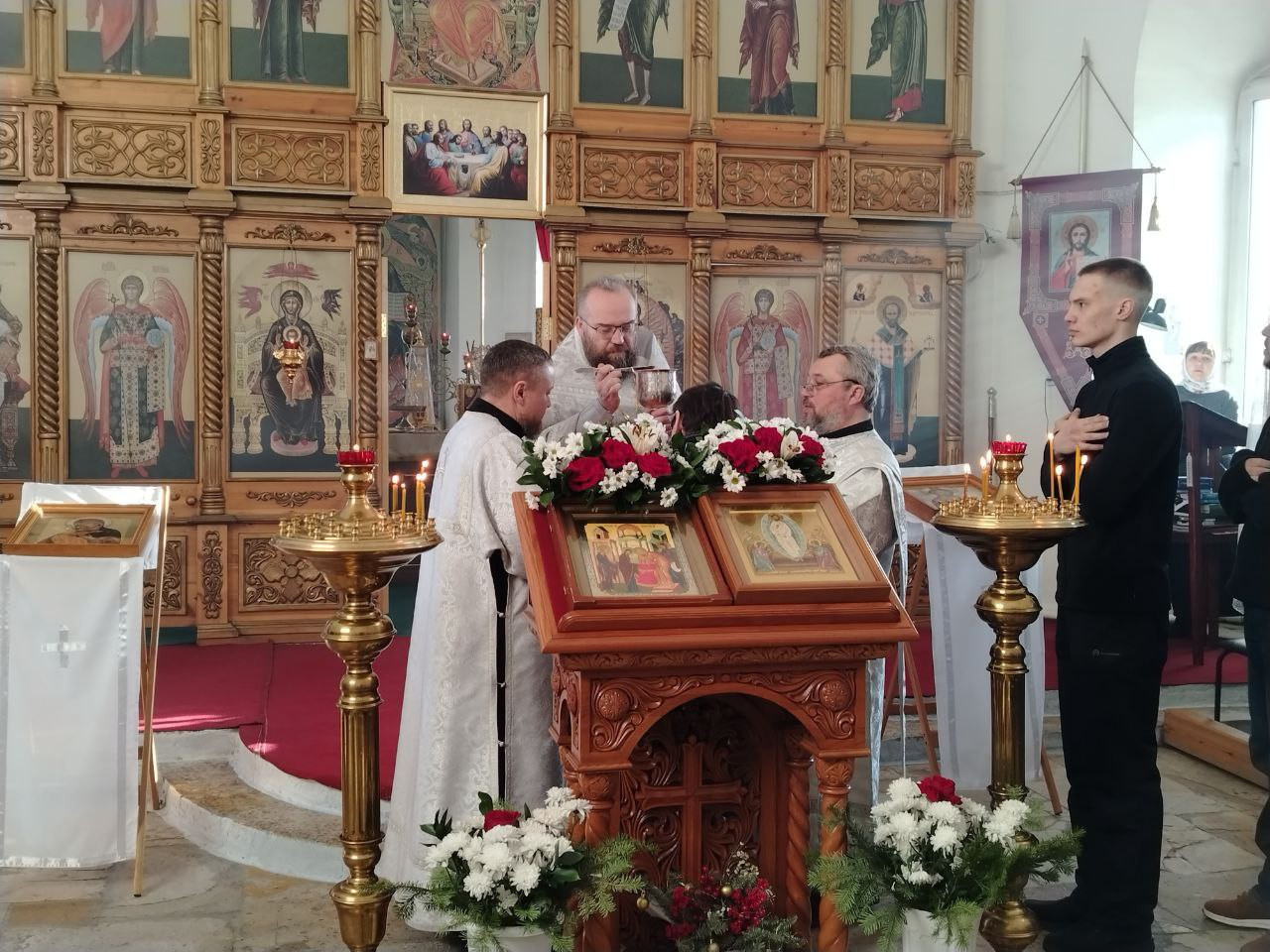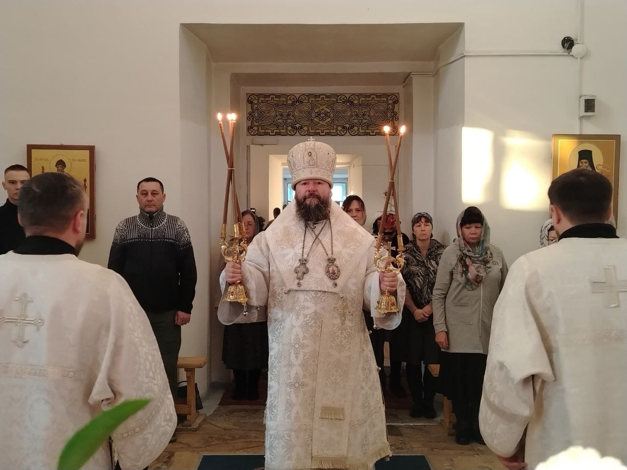 Его Преосвященству сослужили: настоятель храма Рождества Пресвятой Богородицы пгт. Чернышевска протоиерей Андрей Кисов; клирик Воскресенского кафедрального собора г. Нерчинска иерей Роман Пичуев.