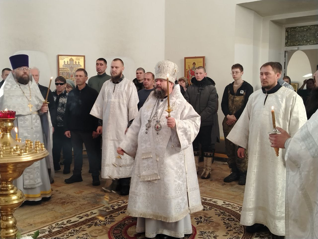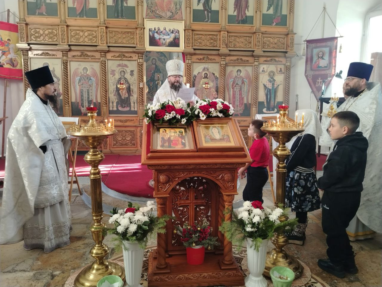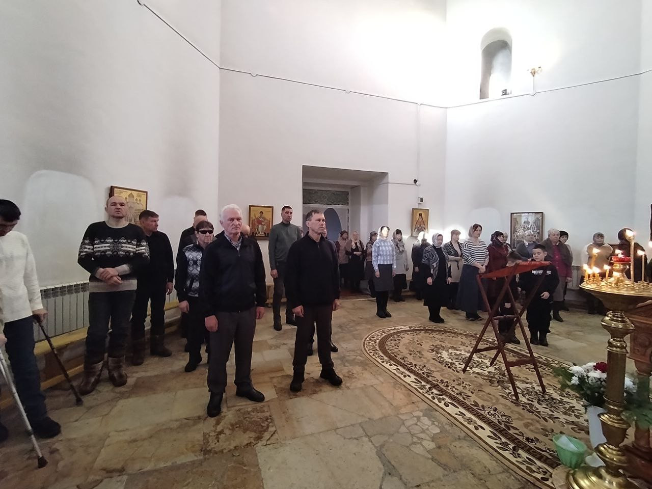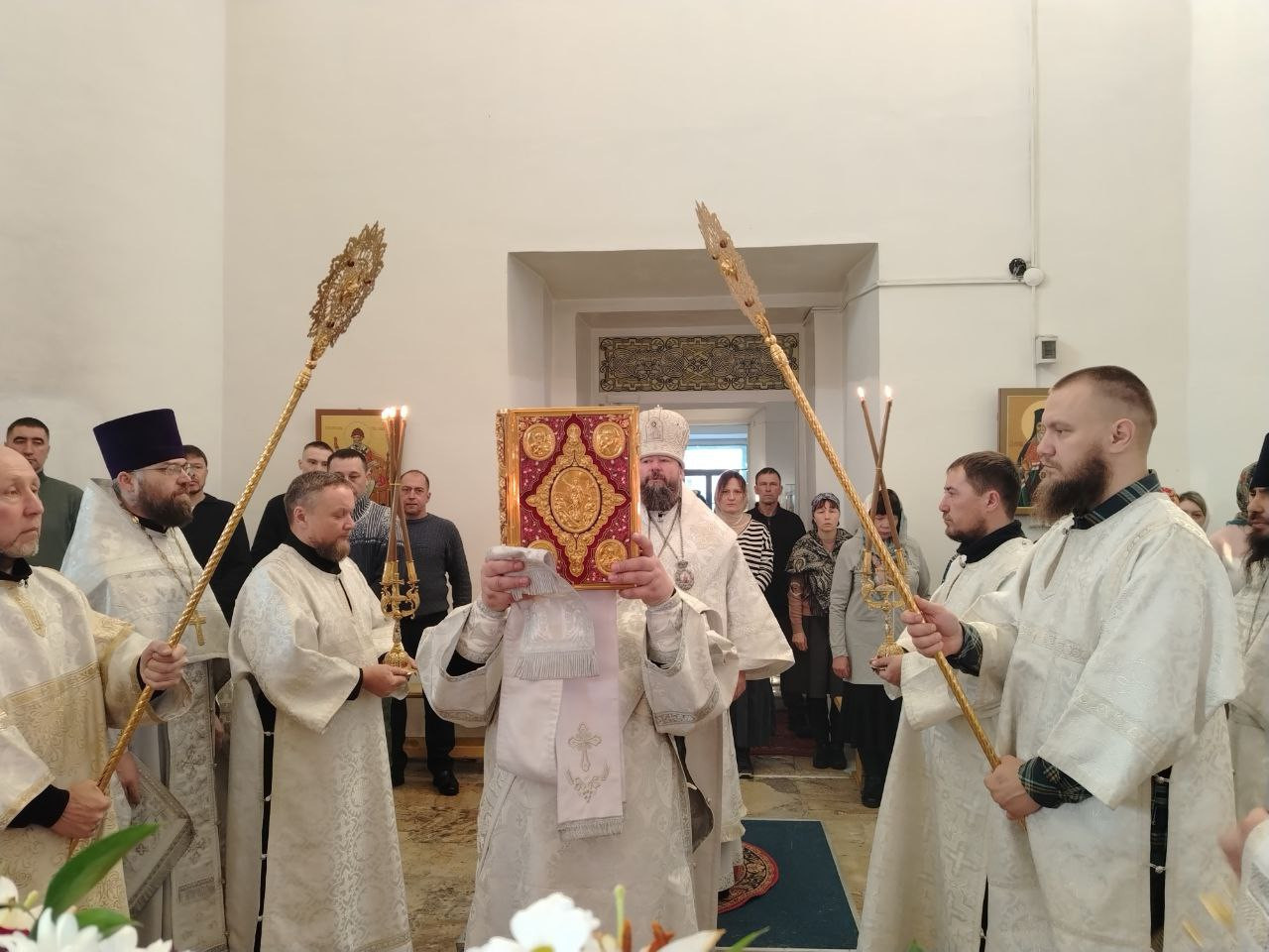 Его Преосвященству сослужили: настоятель храма Рождества Пресвятой Богородицы пгт. Чернышевска протоиерей Андрей Кисов; клирик Воскресенского кафедрального собора г. Нерчинска иерей Роман Пичуев.